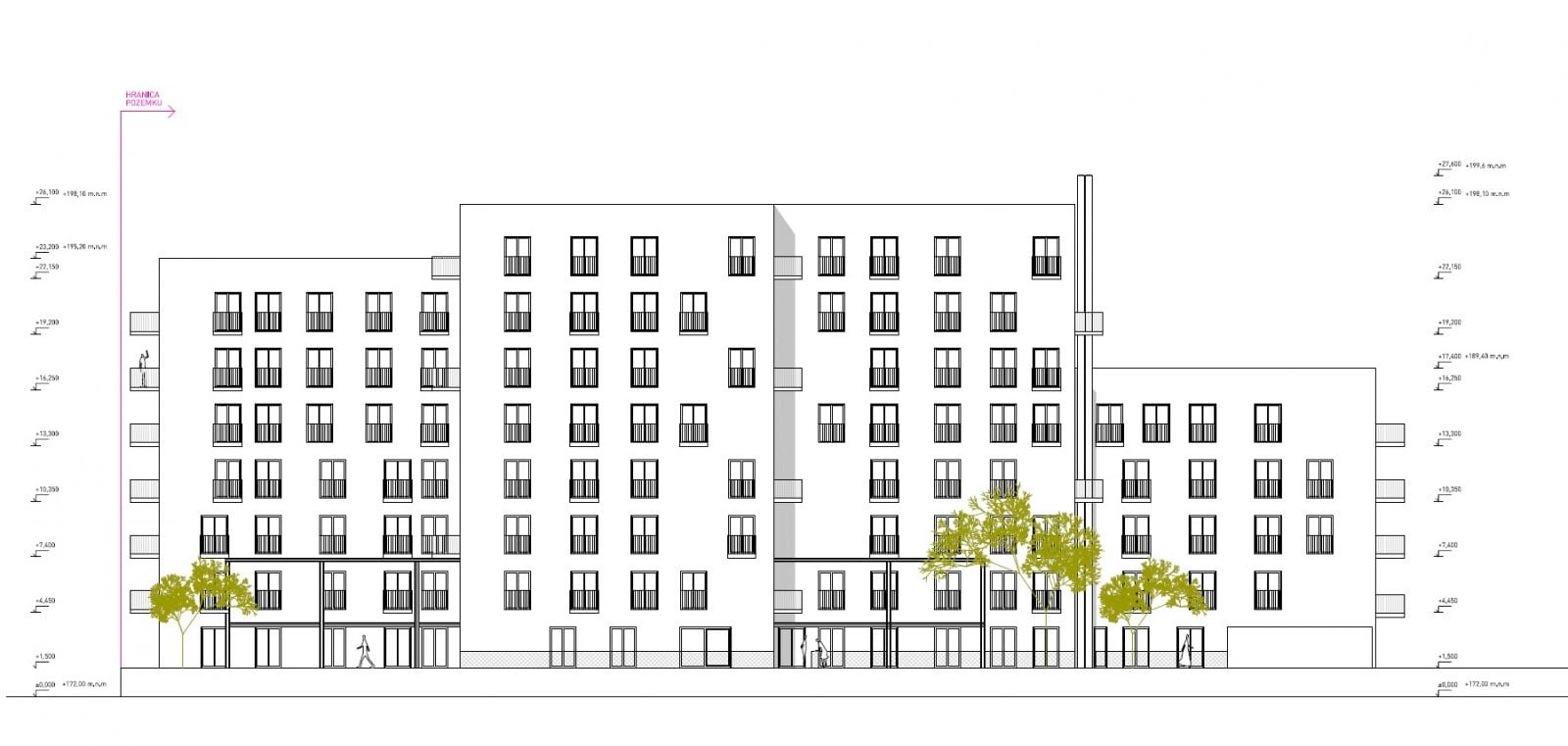 Čo sa týka obchodnej vybavenosti, naplánované sú dve jednotky, z toho jedna bude orientovaná priamo do novej účelovej komunikácie, druhá bude na vyvýšenej platforme a bude mať výhľad do rekreačnej zelenej časti pozemku, ako aj na menšie povrchové parkovisko. Parkovacích miest bude inak 139, z toho 124 v garáži. Účelová komunikácia bude napojená na ulicu K železnej studienke.