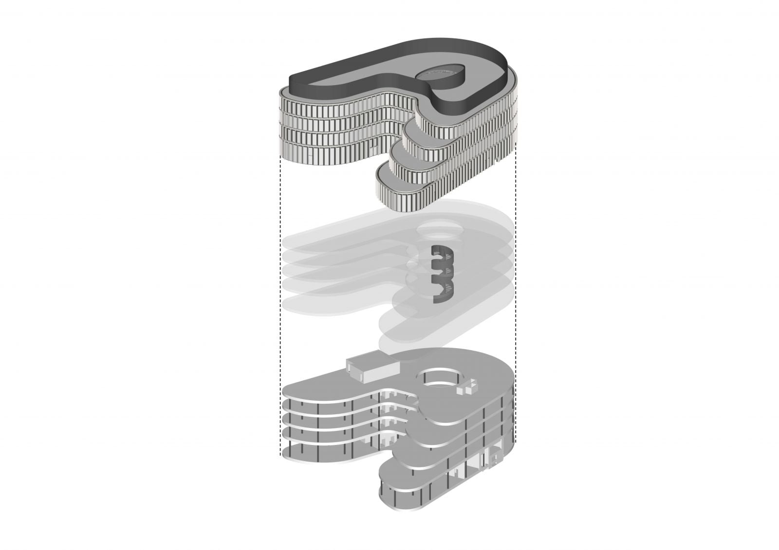 Schéma budovy, v ktorej srdci vzniklo veľkorysé átrium. Zdroj: A.M. Architects