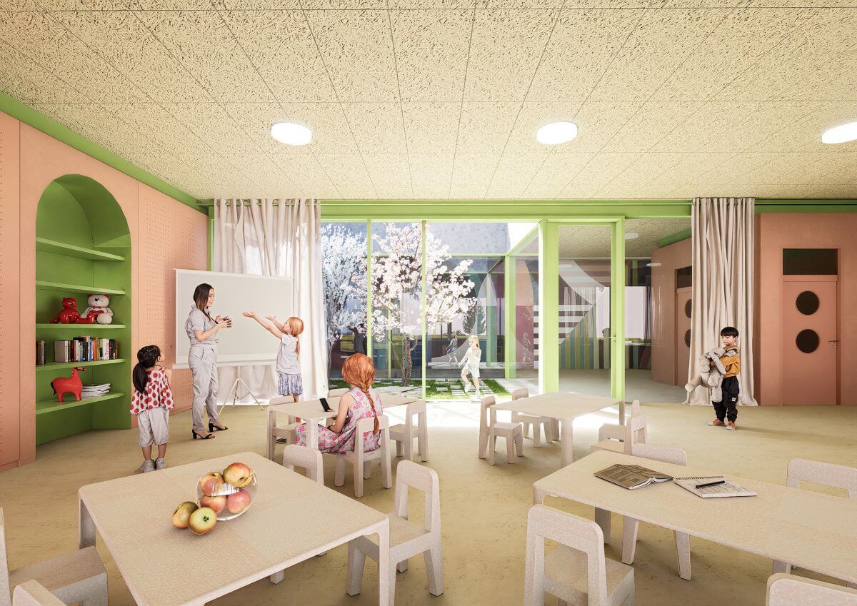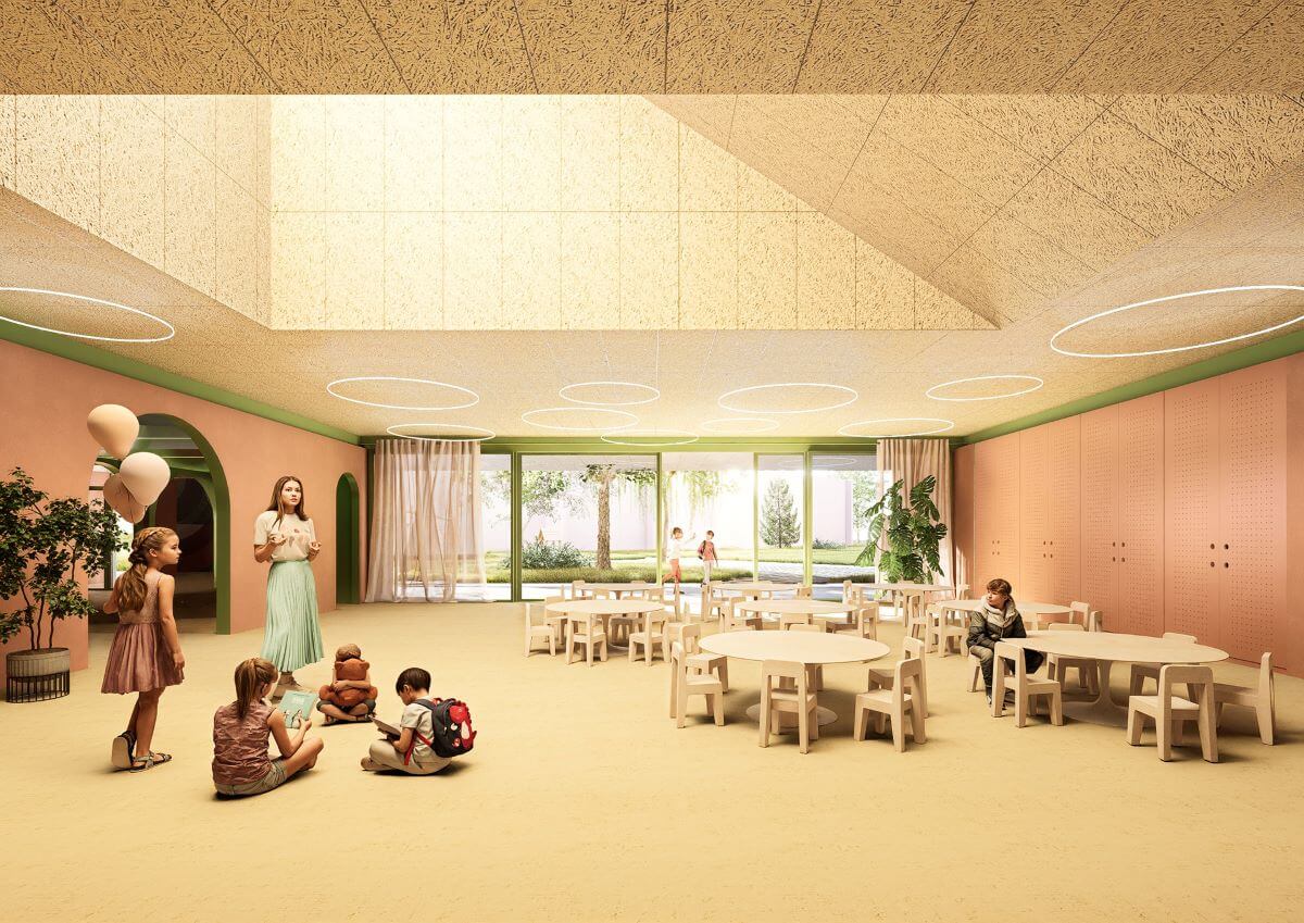 Ku každej z tried bude vo finále prislúchať spálňa, samostatná šatňa aj hygienické zázemie. V objekte škôlky nebude chýbať ani centrálna miestnosť pre spoločné aktivity a stolovanie. Pomerne netradične bude súčasťou vzdelávacej inštitúcie aj infrasauna. Mimo vyučovania bude prístupná aj ostatným obyvateľom Trnavy.