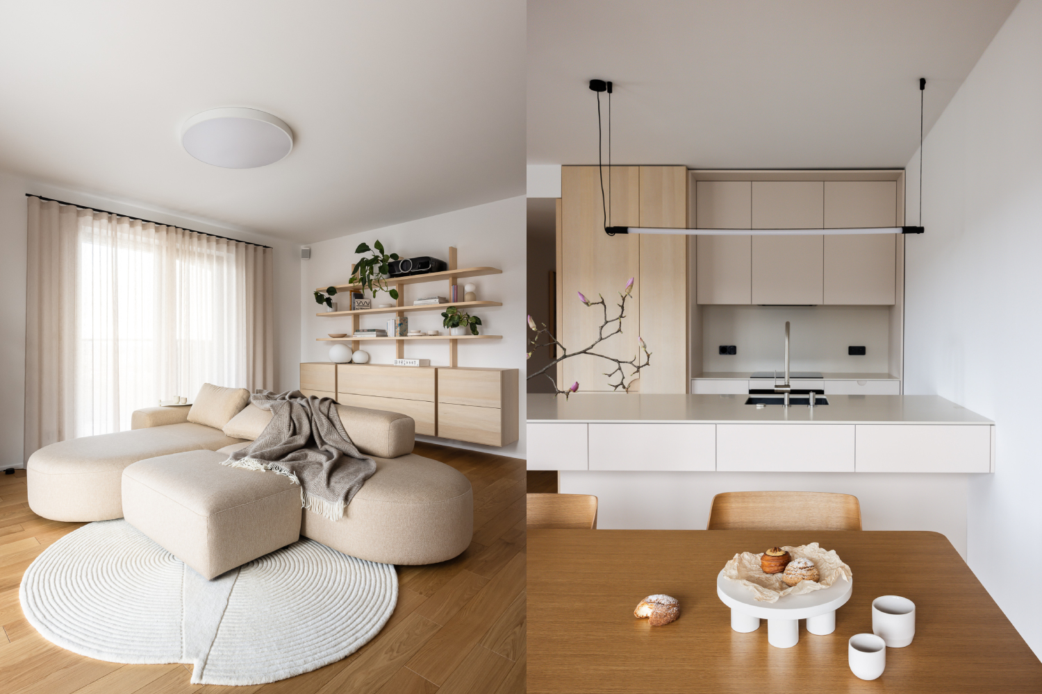 Okrem teplých odtieňov môže interiéru prospieť aj neutrálny základ. Tlmené tóny sivej, béžovej alebo pieskovej vytvárajú ideálny podklad pre sezónne zmeny, keďže sa ľahko kombinujú s akcentovými farbami typickými pre jeseň. Béžová, biela, teplá sivá, ale aj čierna (v akcentoch) tak vyvážia dramatickú paletu jesenného lístia.