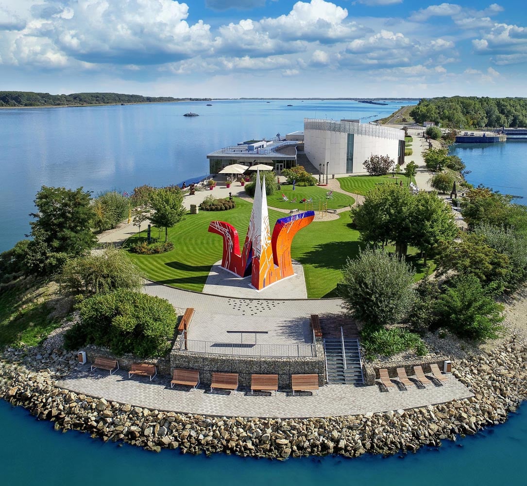 Okrem interiérových priestorov je dostupná aj strešná promenáda, ktorá ponúka panoramatický výhľad na okolitú dunajskú krajinu a Bratislavu. Výsledkom je harmonicky usporiadaný komplex, ktorý spája umenie s prírodou.