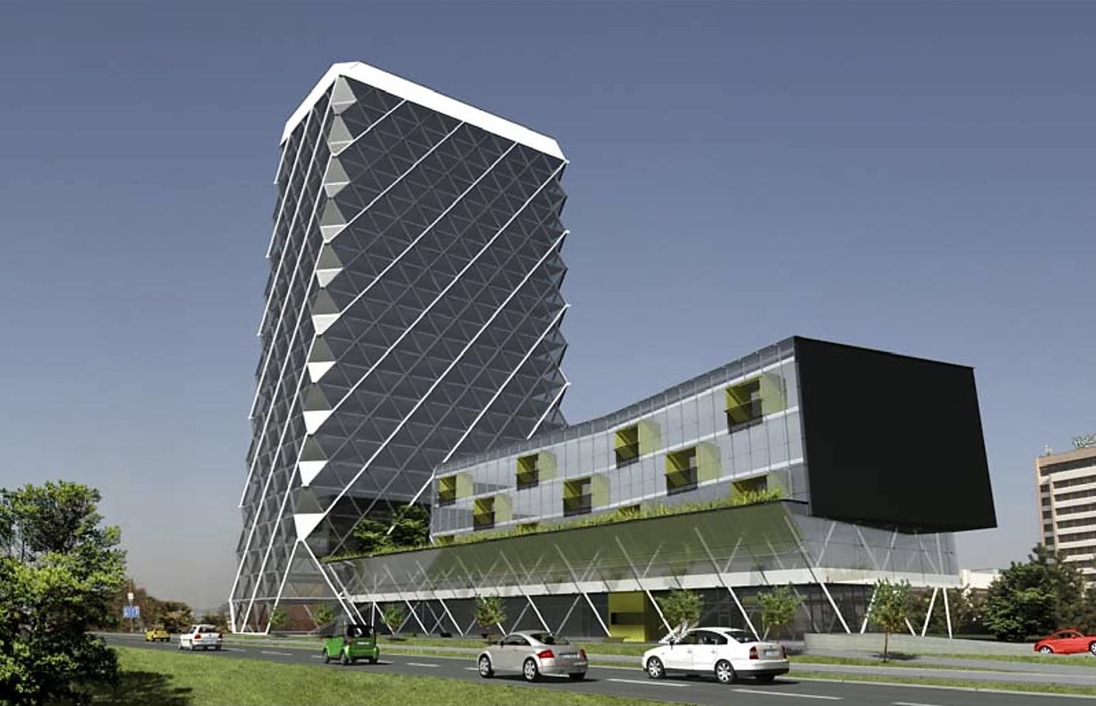 Z oficiálnej dokumentácie taktiež vyplýva, že architektúra všetkých blokov je riešená dvojitým fasádnym systémom. Výškový objekt má byť charakteristický dynamickým uhlopriečnym fasádnym členením. Nárožia objektu budú zasklené reflexným sklom, členenie prechádza náznakovo do konštrukcie parteru administratívneho bloku na dvoch nadzemných podlažiach. Tu sa bloky prepájajú aj funkčne. Je očividné, že architekt sa pri koncipovaní dizajnu veže inšpiroval mrakodrapom Hearst Tower v New Yorku od sira Normana Fostera.