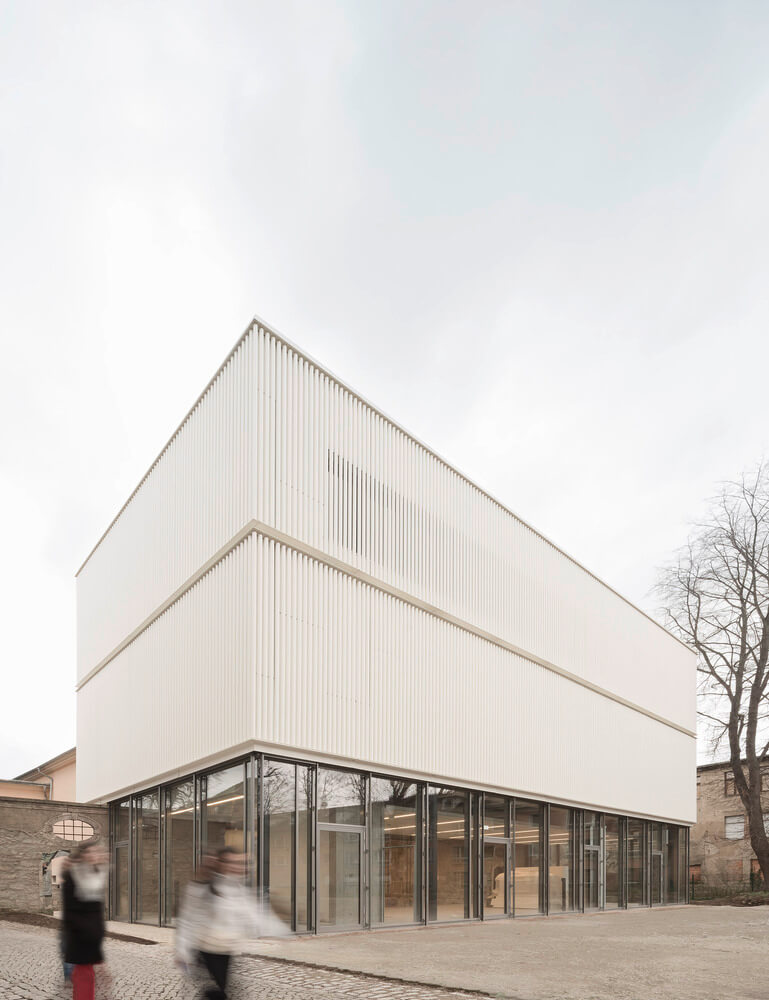 Zaujímavá poloha novej umeleckej inštitúcie aj jej funkčná náplň sa odrazili v návrhu rekonštrukcie a dostavby bývalej zbrojnice. Ten ťaží z minulosti danej oblasti a z princípov, o ktorých sa kedysi žiaci študujúci na Bauhause učili. Výsledkom je dokonalá symbióza historickej budovy s novou architektonickou štruktúrou.