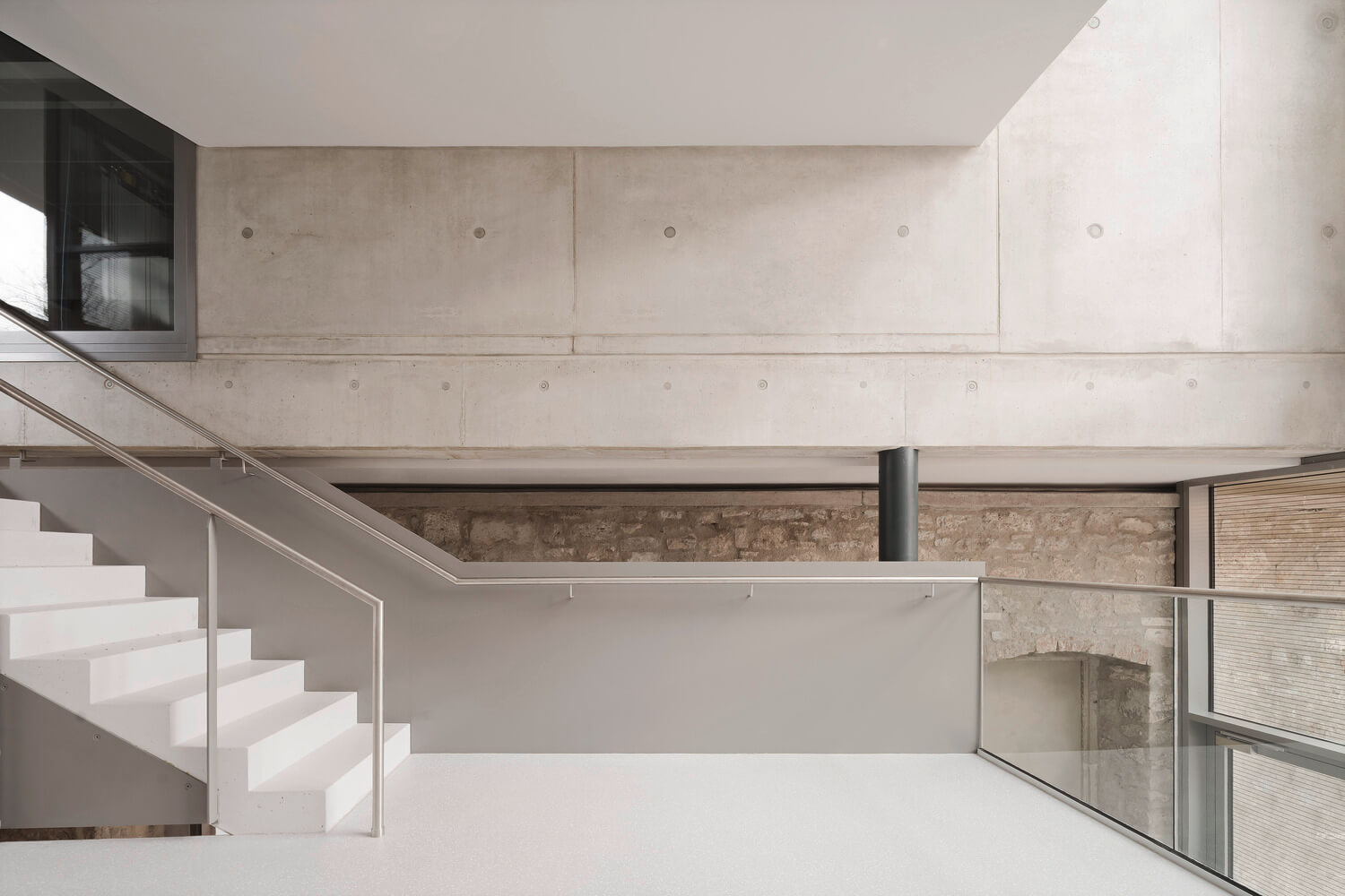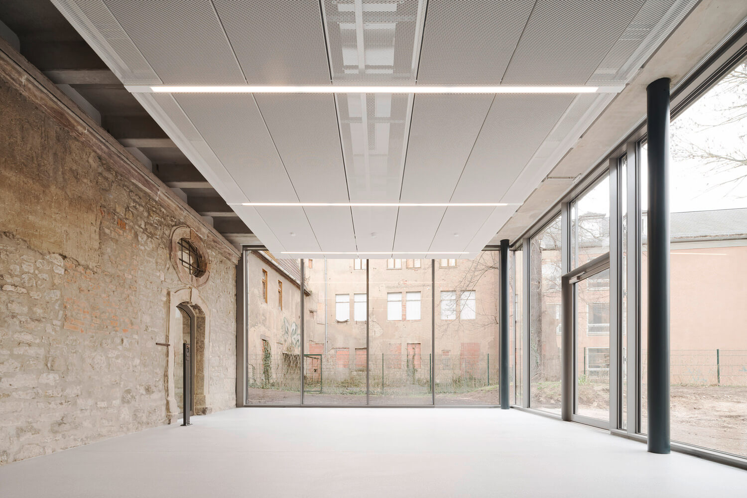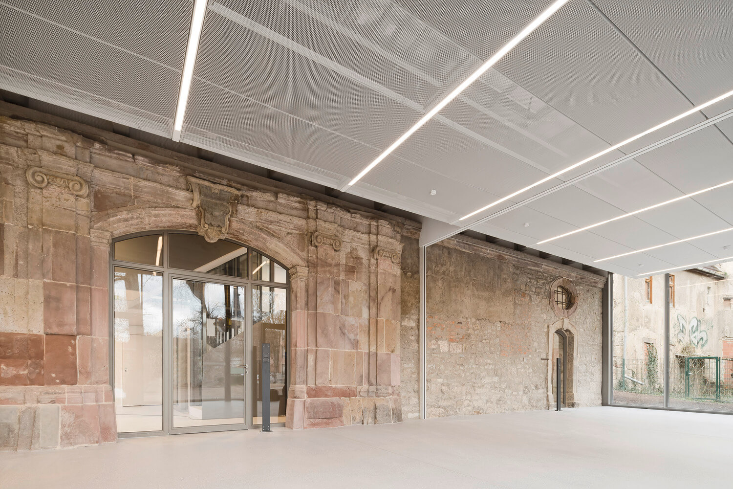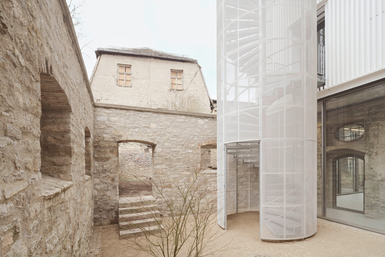 Pôvodná aj nová časť výsledného objektu sú v silnom kontraste, ktorý sa prejavil v materiálovom riešení a v tvarosloví nových stavebných prvkov. V istých častiach objektu dokonca novovybudované časti nadväzujú na polorozpadnuté steny bývalej zbrojnice, vďaka čomu je história lokality ešte viac hmatateľná. Vo svojej podstate mal projekt prestavby jeden hlavný cieľ: vylepšiť existujúce prostredníctvom minimálnych, no zato jasne čitateľných zásahov.