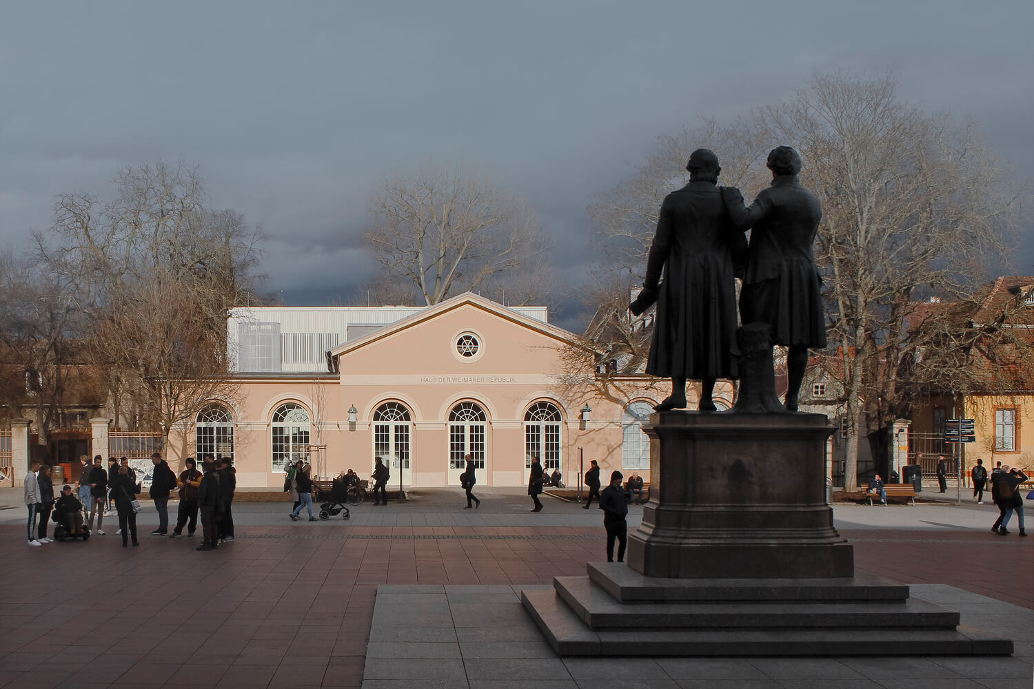 Theaterplatz (Divadelné námestie) sa nachádza v juhozápadnej časti Weimaru. Námestie je predpolím nemeckého Národného divadla a priamym pokračovaním hlavnej pešej zóny mesta. Spolu s pešou zónou spadá pod pamiatkovú ochranu. V priamej nadväznosti na toto pre mesto významné námestie sa okrem Národného divadla nachádza aj historická budova bývalej zbrojnice, ktorá bola postavená v roku 1823. Vďaka roku svojho vzniku je dôležitou súčasťou histórie mesta. V priebehu rokov prešla budova mnohými rekonštrukciami, ktoré do veľkej miery ovplyvnili nielen jej architektonický výraz, ale aj prevádzkovú schému.