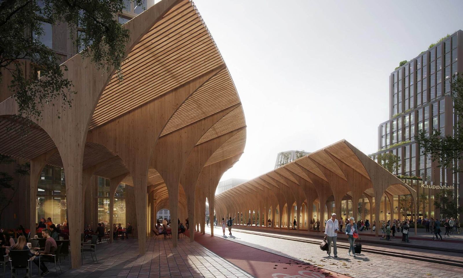 Dôležitý uzol bude lemovaný sériou drevených tieniacich prvkov aj stromoradím. Ich kombinácia vytvorí kryté priestory na stretávanie sa, oddych či šport a zároveň funkčne doplní prevádzky, nachádzajúce sa v tesnej blízkosti jednotlivých prvkov. „Štvrť sústredená okolo dopravnej tepny posilní spojenie medzi mestom Turku a Helsinkami a stane sa živou časťou mesta pre obyvateľov, študentov aj pracovníkov,” povedali o projekte autori víťazného návrhu.