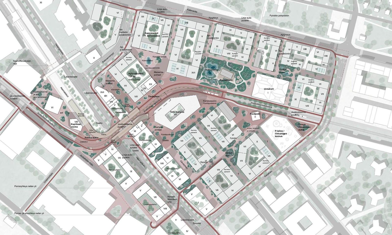 Na projekte z mesta Turku je príkladných viacero vecí. Nepochybne je zaujímavé, ako sa autorom víťazného návrhu podarilo potrebnú dopravnú infraštruktúru integrovať do novovznikajúcej štvrte. Električková ani železničná trať, prechádzajúca cez štvrť, tak v priestore netvorí bariéru. Práve naopak, podporuje prepojenie jednotlivých častí. Architekti pritom využili jednoduchý princíp - dopravnú tepnu rozšírili o pešie aj cyklistické chodníky a tie následne prepojili s verejnými priestranstvami, nachádzajúcimi sa pred samotnými budovami.