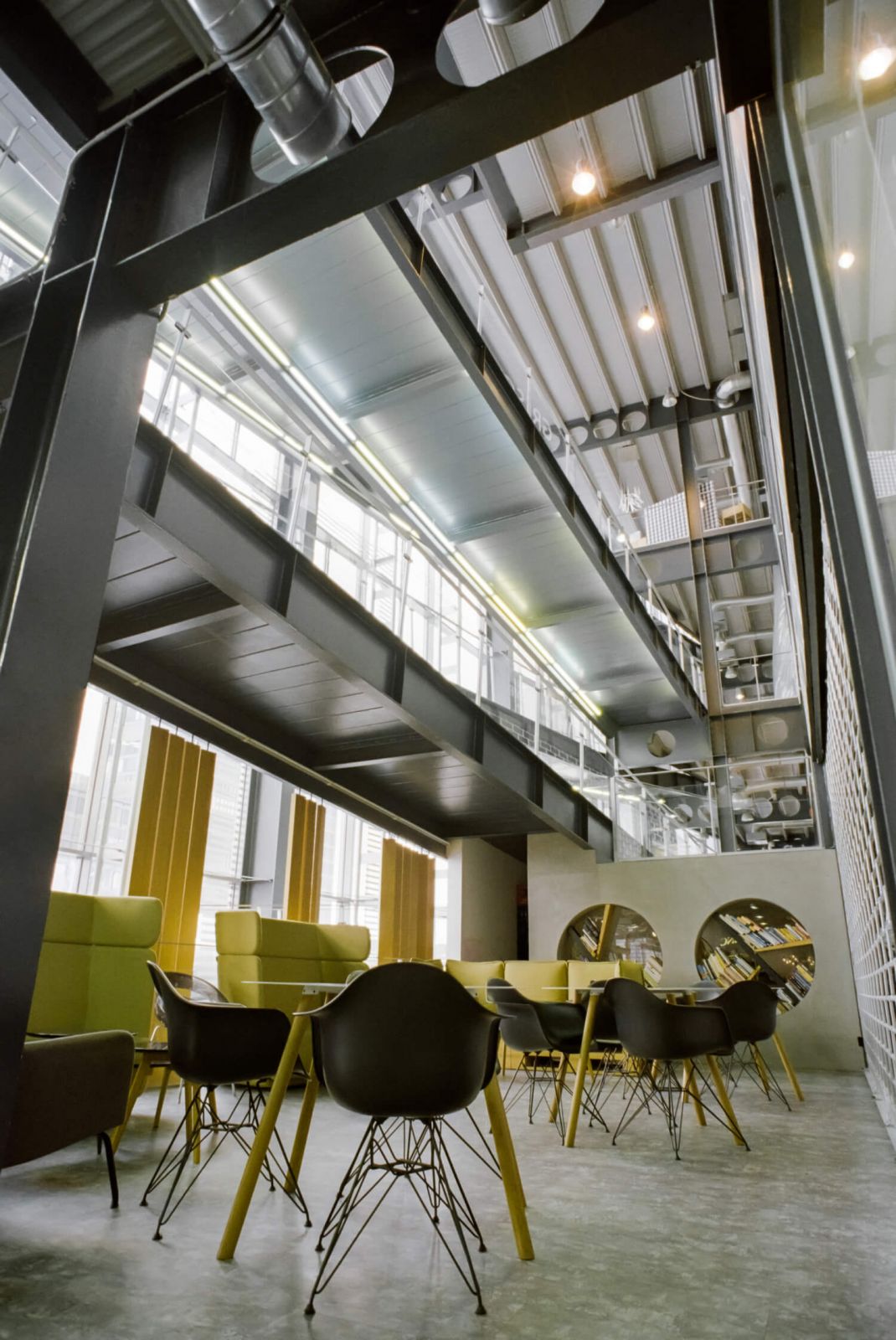 Architektonický tím, vedený skúseným a renomovaným architektom Ľubomírom Závodným, navrhol konštrukčne odvážny objekt, ktorého otvorená dispozícia s priznanou nosnou oceľovou konštrukciou, umožňuje vysokú variabilitu predajnej plochy a dáva vyniknúť vystavenému nábytku. Severná fasáda, orientovaná k diaľnici, je transparentná a za dňa interiér vhodne presvetľuje, kým po zotmení sa stáva v podstate výkladom. Zvnútra zas umožňuje výhľady na zeleň Sadu Janka Kráľa a centrum Bratislavy. Južná fasáda, otočená k železnici, je uzavretá, vysunuté konzoly ju však výtvarne dotvárajú a zároveň umožňujú rozšíriť predajnú plochu.