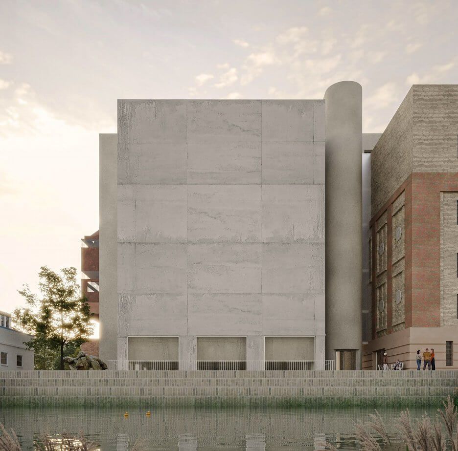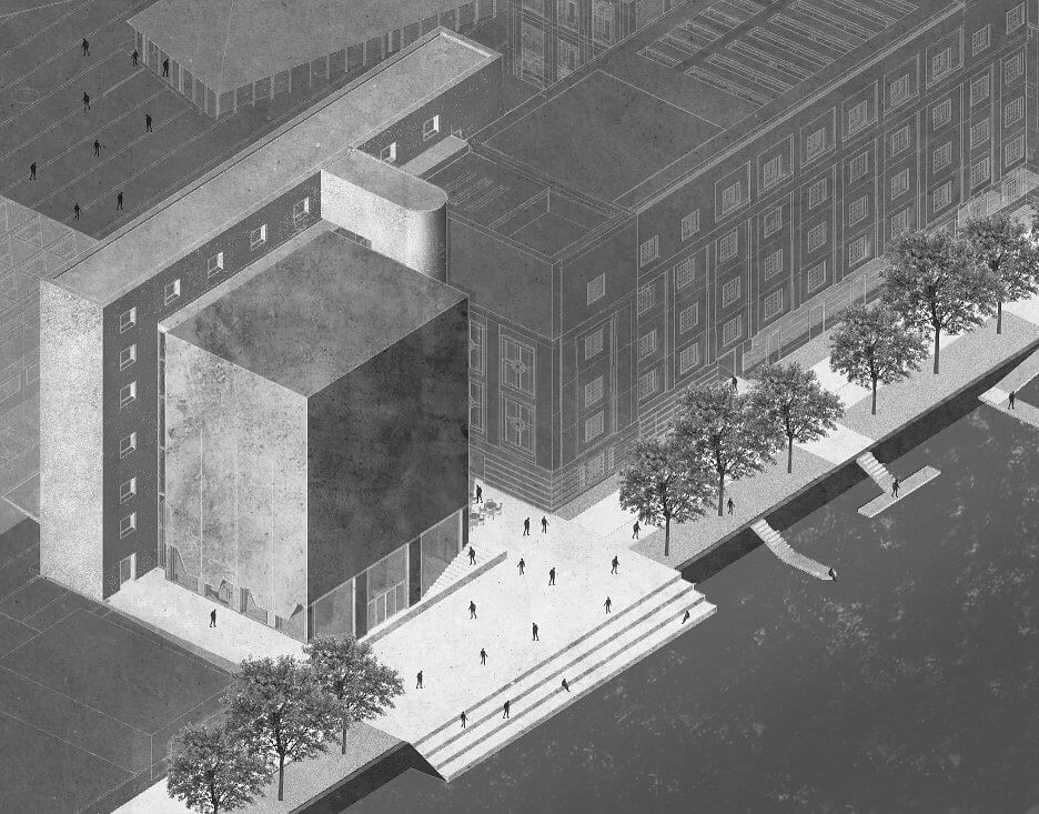 Podľa odbornej poroty víťazný návrh zároveň najlepšie sprostredkuje prepojenie verejného priestoru nábrežia s interiérom objektu. Súčasťou predstaveného projektu je tiež zdvihnutie násypu po celej dĺžke budovy, čo má mať najmä protipovodňový charakter. „Súbor takýchto intervencií poskytuje intenzívnejší kontakt s riekou, kultúrou a spoločnosťou,“ uzatvárajú popis exteriérových zásahov autori víťazného projektu.