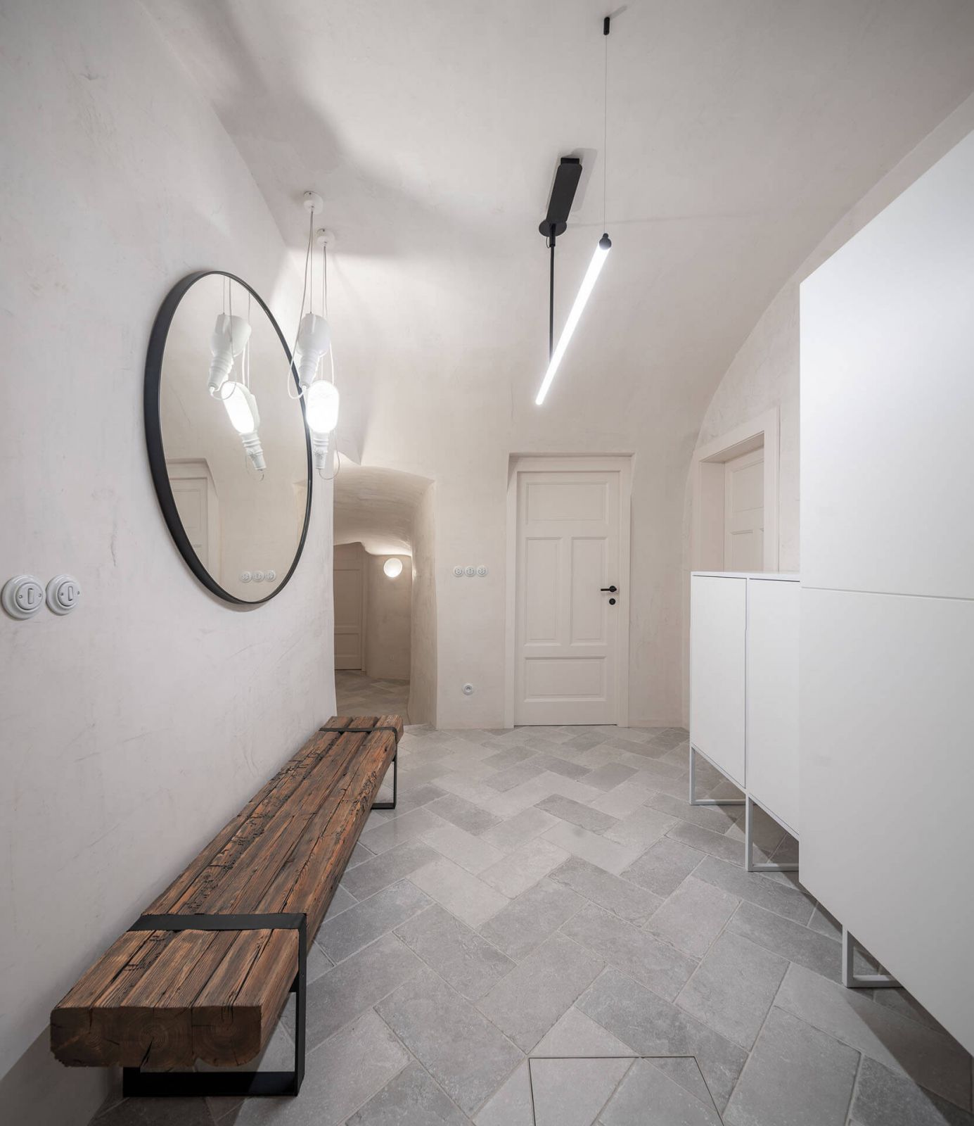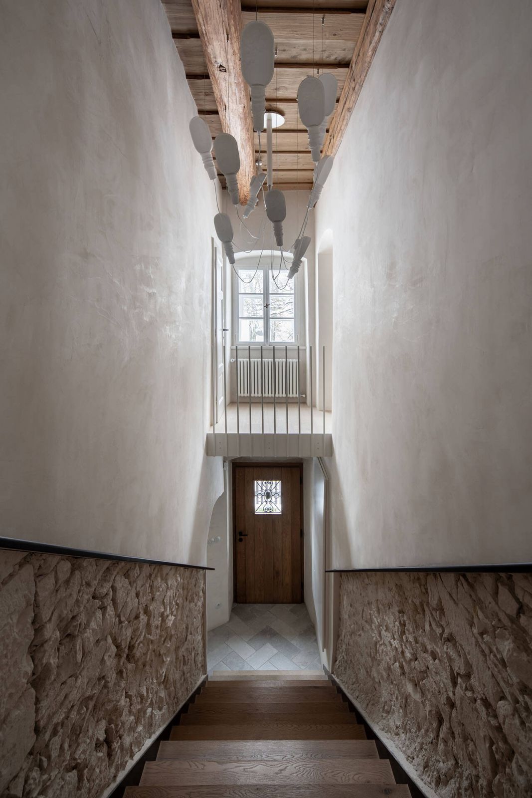 Rekonštrukcia Hradobného domčeka HRADBY v sebe spája rešpekt k histórii a súčasné požiadavky na komfortné bývanie. Zachované klenby, pôvodné drevené stropy a historické omietky vytvárajú neopakovateľnú atmosféru, zatiaľ čo moderné technológie a citlivo zvolený dizajn zabezpečujú funkčnosť a pohodlie. Dôležitou súčasťou projektu bola snaha nechať budovu „dýchať“ – odkryté tehlové múry a minimálne zásahy do historických prvkov podčiarkujú autenticitu priestoru. Vďaka premyslenej kombinácii materiálov, farebnej palety a subtílnych dizajnových prvkov sa podarilo vytvoriť harmonické spojenie minulosti a súčasnosti, ktoré ponúka nielen vizuálny zážitok, ale aj plnohodnotné bývanie.