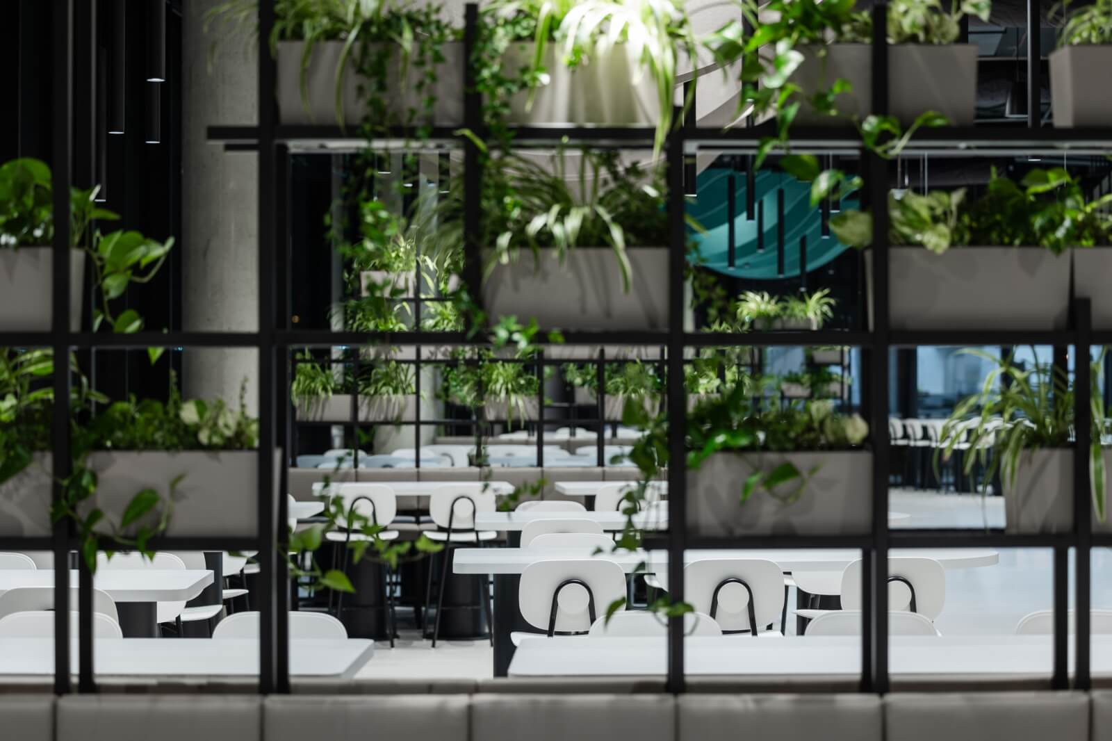 Na rozdelenie priestoru boli použité čierne deliace konštrukcie doplnené o zeleň a rôzne dekorácie. Vďaka pomyselnému rozdeleniu získavajú jednotlivé plochy komornejší charakter, čo prispieva k celkovej pohode zamestnancov.