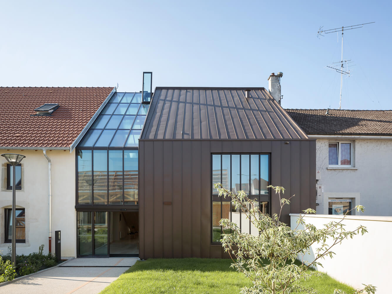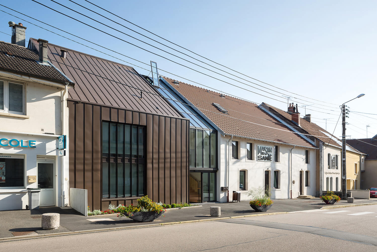 Z rovnakých predpokladov vychádzal aj projekt mestskej kliniky s opatrovateľskou službou vo východofrancúzskom mestečku Lifoll-Le-Grand neďaleko Nancy, ktorá bola osadená do špecifického prostredia mestskej radovej zástavby. Tá sa vyznačuje najmä sedlovými strechami, určitými výškovými limitmi a nutnosťou zachovať plnohodnotný peší ťah v predpolí budov. Objekt kliniky vznikol na mieste bývalého skladu, ktorý mestu už roky neprinášal žiadny osoh. Za návrhom novej podoby objektu stojí lokálne štúdio Studiolada.