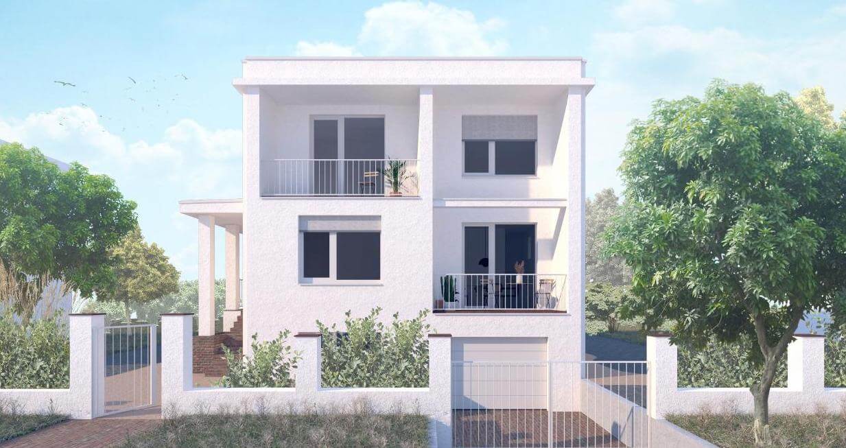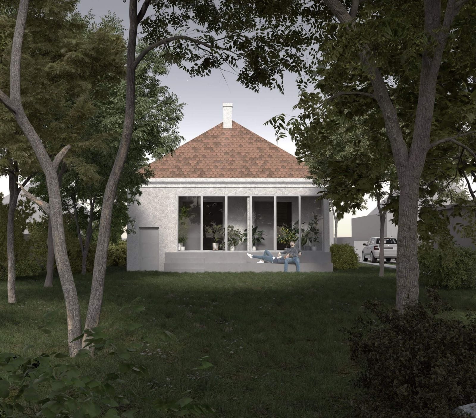 Rovnako ako pri návrhu domu typu „Štvorec”, aj tu architekti pracovali s ideou stierania hranice medzi interiérom a exteriérom. V návrhu vytvorili perimeter okolo domu, ktorý vytvoril možnosť vstupovať do rôznych častí domu. V rámci perimetra navrhli aj terasu smerom do záhrady. Návrh očistil dom od pôvodnej vstupnej prístavby a tým eliminoval prebytočný objem. Jeho hodnota spočíva práve v skromnej ambícii zasahovať do objektu, čo môže byť inšpiráciou pre ľudí s obmedzenými finančnými prostriedkami.