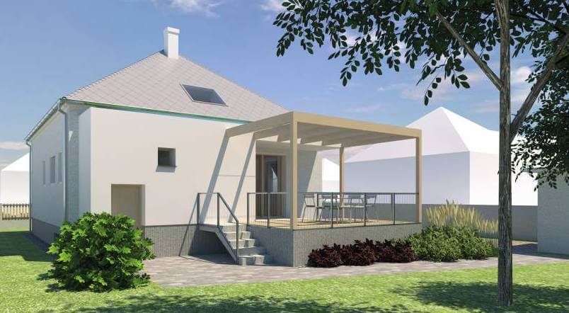 V tomto prípade architekti zmenili pôvodný výraz domu. Pridaná zimná záhrada je vhodným architektonickým prvkom, predlžujúcim krátke teplé ročné obdobie na severe Slovenska. Rovnako ako aj v návrhu domu typu „Kocka”, aj tu architekti pracovali s vytváraním svahu, čím do istej miery eliminujú tepelné mosty v mieste existujúcich základov.