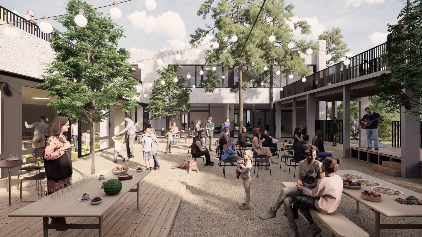 Nové komunitné centrum bude pozostávať z niekoľkých častí. Hlavnou je samotné centrum, ktoré má poskytovať flexibilné priestory pre rozličné aktivity, určené pre všetky vekové skupiny. Druhou je veľká spoločenská sála s vysokým stropom, vhodná pre organizovanie kultúrnych podujatí. Prepojené budú hlavným foyer, slúžiacim ako rozptylový priestor alebo ako miesto pre rozličné prezentácie. Dôležitým priestorom bude aj priľahlý exteriér – bude tu terasa kaviarne, vonkajšia multifunkčná plocha či detské ihrisko.