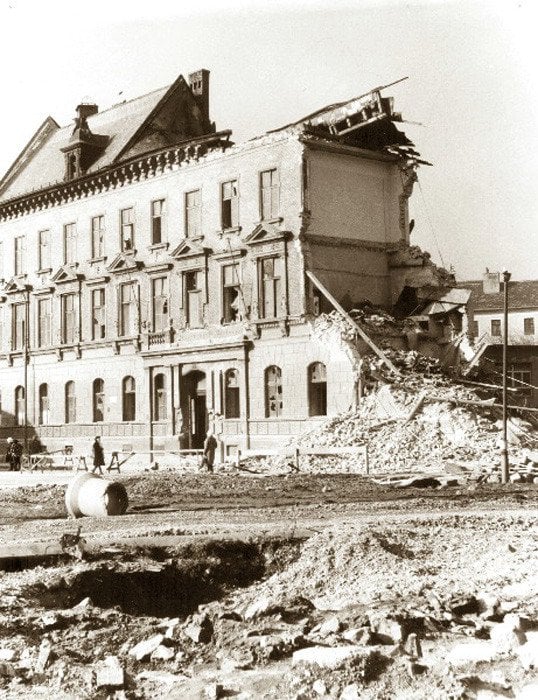 Odstraňovanie zástavby na mieste dnešného Najvyššieho súdu SR. Zdroj: Bratislava na historických fotografiách a obrazoch