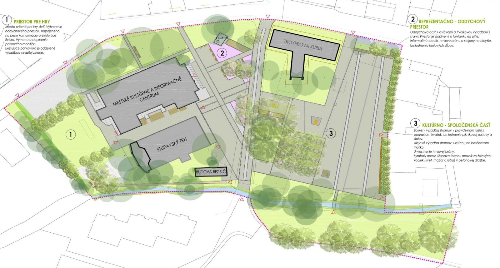 Verejné priestory mnohých slovenských miest majú vysoký potenciál pre rozvoj komunitných a spoločenských aktivít, dlhodobo však ostávajú zanedbané. Namiesto atraktívnych plôch pre oddych, stretávanie sa, hru alebo rozvoj biodiverzity sú tvorené parkovacími plochami, voľne osadenými stromami a vychodenými chodníkmi. To bol aj prípad okolia Troyerovej kúrie v Stupave.