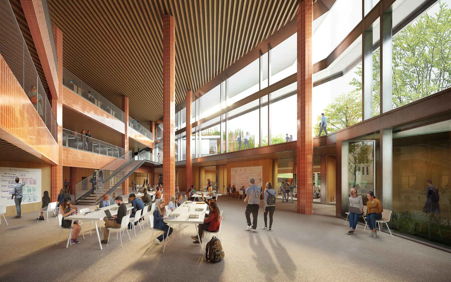 Nová budova bude podľa predstavených vizualizácií len o niečo vyššia ako existujúce objekty v jej okolí. Jej strecha má byť vo veľkej miere pokrytá zeleňou a prístupná z priľahlého námestia prostredníctvom rozľahlých pobytových schodov aj z pešej promenády, nachádzajúcej sa nad úrovňou terénu. Novovybudovaná séria cyklistických a peších chodníkov následne spojí novostavbu so zvyškom kampusu a zabezpečí tým pomerne rýchly a bezkolízny presun študentov v rámci celého areálu.