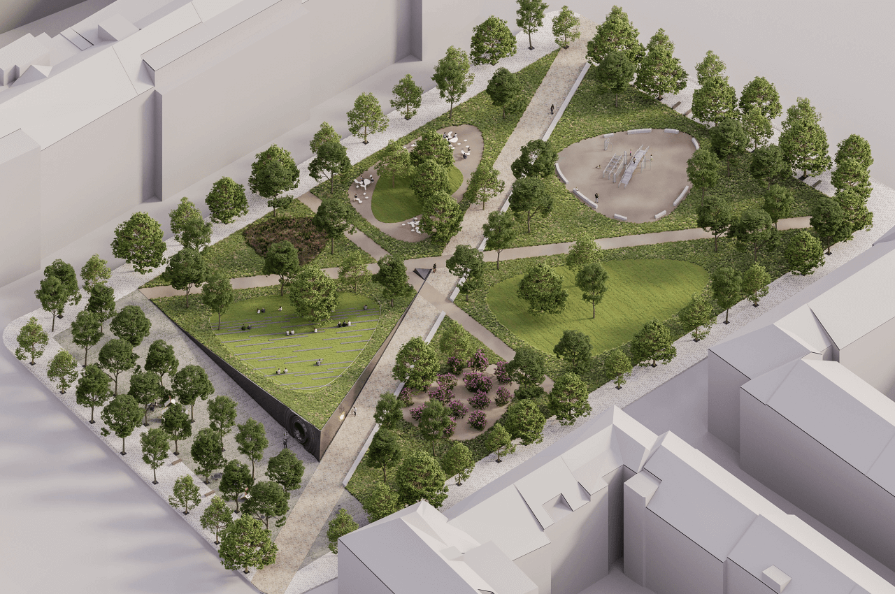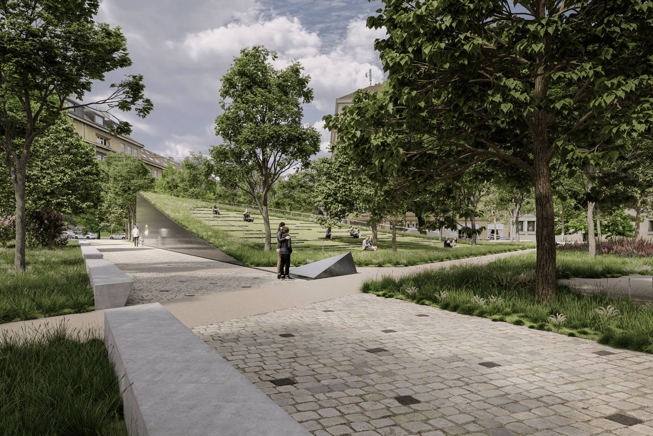 Víťazný návrh sériou peších ťahov rozdeľuje riešené územie na niekoľko zelených plôch s rôznymi funkciami. V parku po novom pribudnú napríklad priestory pre deti, miesto určené na piknik, oddych či upravená záhrada. Chýbať nebudú ani miesta určené k ucteniu obetí či miesto pre kladenie vencov.