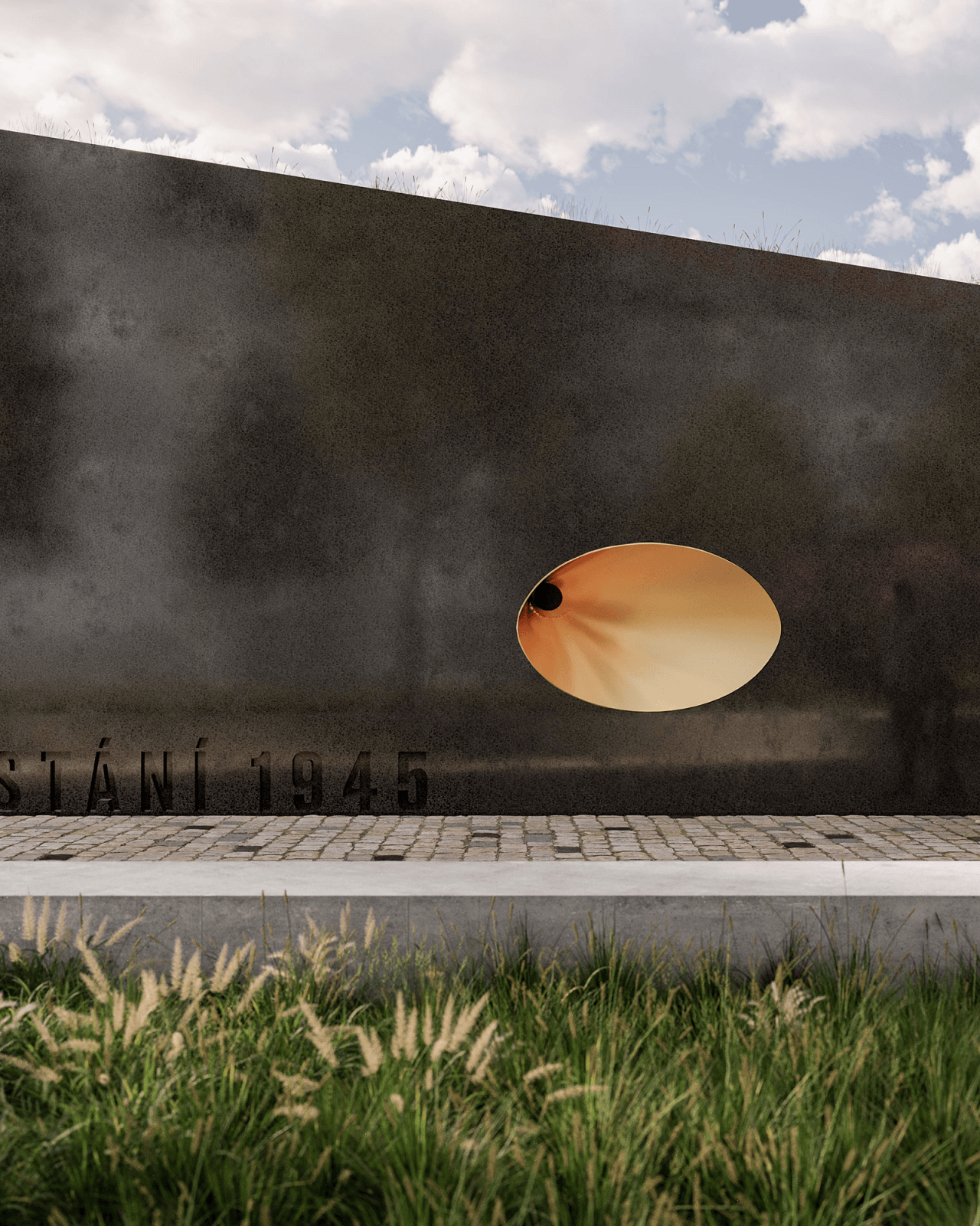 Tvar pietneho objektu vychádza z myšlienky cípu a vo svojej podstate má návštevníkom parku pripomínať temnú stránku vojny. Najvýraznejším prvkom pomníka je bezpochyby rozvlnený monumentálny prierez umiestnený na jednej zo stien, ktorý skrz celý objekt plynulo prechádza až do „mluvítka” na opačnej strane. Ide o interaktívny prvok, ktorý má symbolizovať slobodu a participáciu.