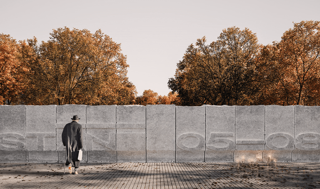 Víťazný návrh nesie názov „Voláme všechny...” Architektonický a výtvarný koncept stavia na myšlienke, že pomník nemá byť len pietnym miestom, ale aj súčasťou každodenného života. Nová podoba pomníka teda opúšťa typickú vertikálnu povahu podobných objektov a vyniká silnou horizontalitou. Vďaka tomuto kroku celý objekt ľahšie zapadne do verejných priestranstiev na Námestí Interbrigády.