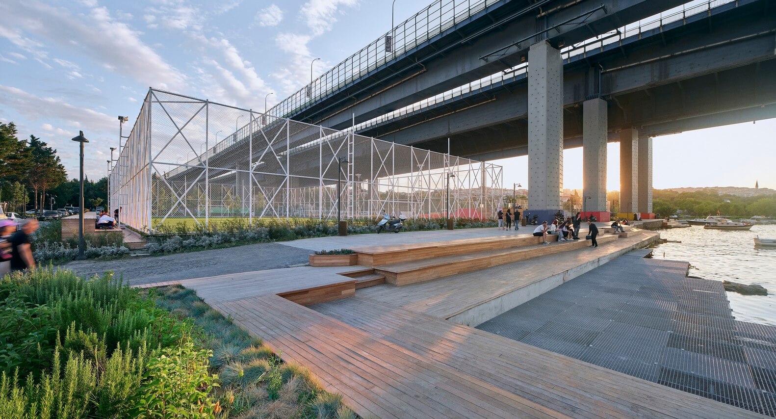 V okolí diaľničného mosta vzniklo viacero oddychových zón, športovísk aj ostrovčeky plné zelene. Počas prechádzky novonavrhnutou promenádou môžu obyvatelia mesta aj jeho návštevníci oddychovať, športovať lebo zabávať sa. Okrem rôznorodosti funkcií architekti dbali aj na to, aby boli jednotlivé zóny navrhnuté s ohľadom na rôzne vekové kategórie.