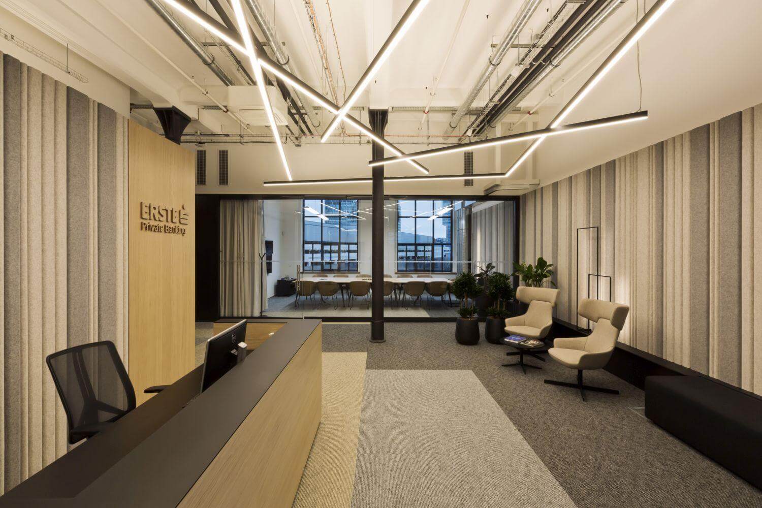 Aktívne sú aj komerčné banky. Azda najúspešnejším počinom je projekt TB Lobby, za ktorým stojí štúdio AT26 architects. Najvýraznejším prvkom interiéru sa v tomto prípade stal centrálne umiestnený výrez v tvare kruhu. „Dizajn tohto prvku sme vytvorili mnohonásobným opakovaním 3D logotypu banky. Organicky plynúci tvar centrálneho priestoru dotvára dizajn atypického recepčného pultu,” opisujú architekti. Výnimočnosť tohto projektu už potvrdila jeho nominácia na cenu CE ZA AR 2023 aj získanie Čestného uznania v rámci ceny INSAID AWARD 2023.