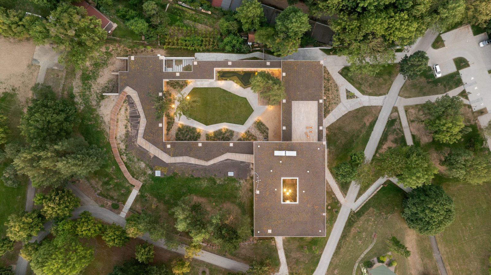 Cenu spoločnosti VELUX za práci s denným svetlom získala Lesná škôlka Parukářka v Prahe od ateliéru Terra Florida a ateliéru Jasné / Zuzana Štemberová, Jana Šaňáková z roku 2024.