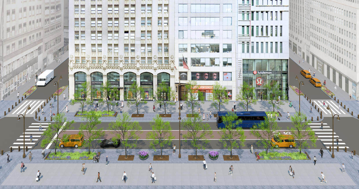 Piata Avenue v New Yorku patrí k najslávnejším uliciam sveta. Populárna nákupná ulica je dnes intenzívne využívaná automobilovou dopravou a obrovské množstvá chodcov sa pohybujú po relatívne úzkych chodníkoch. V dohľadnej dobe sa to má ale zásadne meniť, pričom experti zdôrazňujú nielen urbanistické či estetické výhody, ale aj obrovské ekonomické benefity.