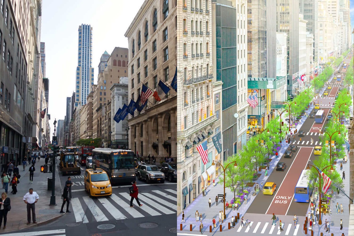 Pred niekoľkými dňami mesto New York spolu so spoločnosťou Future of Fifth Partnership oznámilo zámer transformovať časť Piatej Avenue medzi Bryant Parkom a Central Parkom na bulvár zameraný viac na chodcov ako na automobilovú dopravu. V rámci projektu by sa mali plochy pre chodcov rozšíriť o 46%, čo bude znamenať odstránenie niekoľkých pruhov, pridanie zelene a osvetlenia. Štúdiu navrhli spoločnosti Arcadis, Sam Schwartz Engineering a Field Operations.