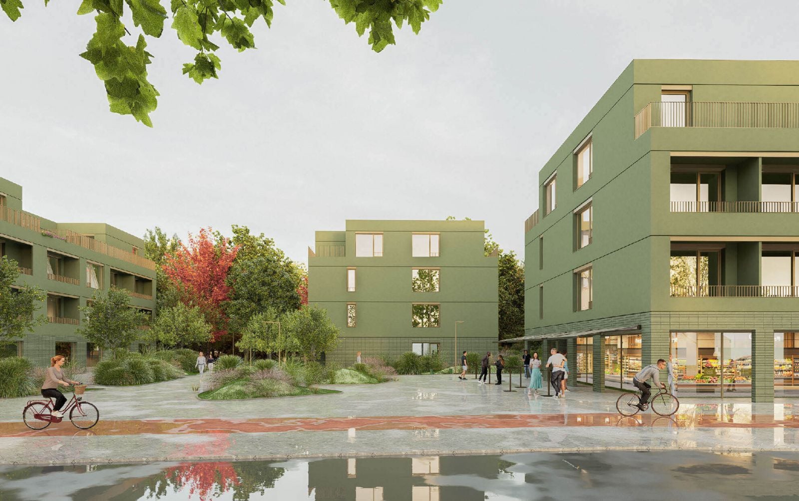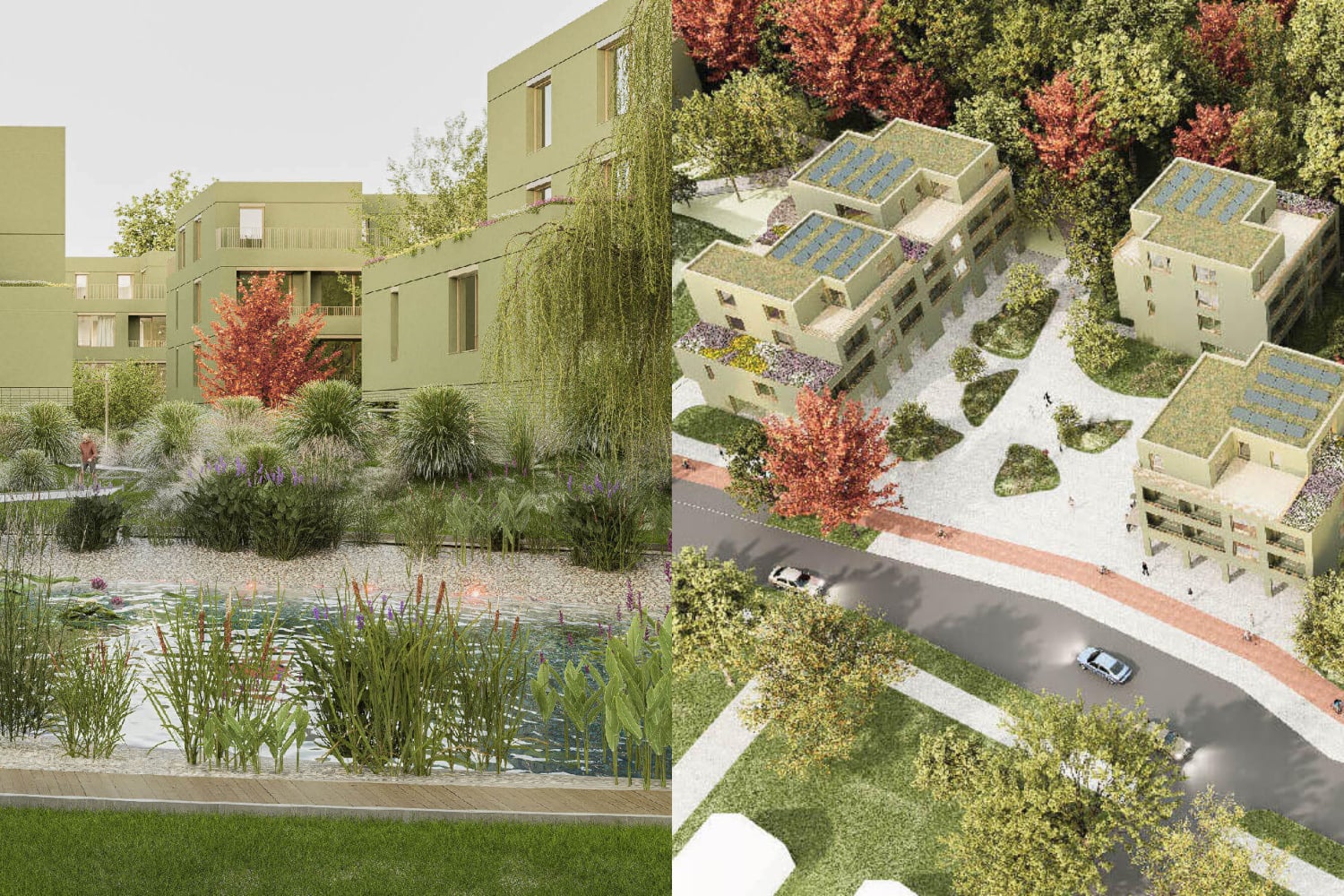 Nové, prevažne bytové domy boli víťazným tímom navrhnuté ako štvorpodlažné. Každý z objektov bude navyše disponovať prístupom do podzemného parkoviska. Vo verejnom priestore nebudú popri peších a cyklistických chodníkoch chýbať ani poloverejné priestory pre deti či zeleň. Odborná porota však autorom víťazného návrhu odporúča znížiť podiel spevnených plôch a preveriť veľkosť navrhovanej vodnej plochy.