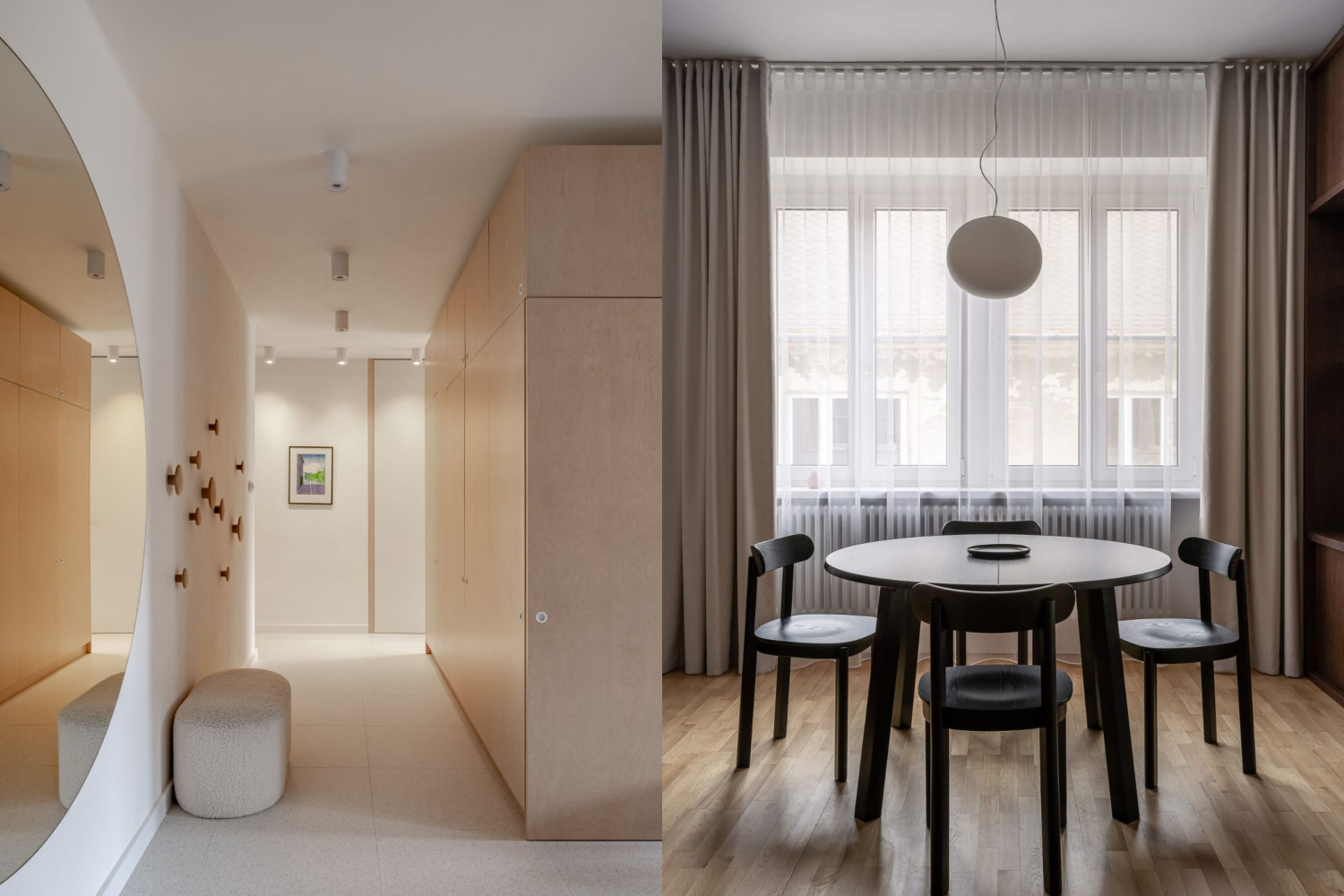 Vstavané úložné riešenia bez úchytov či otvorov navodia dojem priestrannosti a inklúzie. Zrkadlá, najmä tie s väčšími rozmermi, opticky zväčšia plochu tým, že odrážajú nielen svetlo, ale priestoru dodávajú pocit hĺbky tým, že ho násobia.