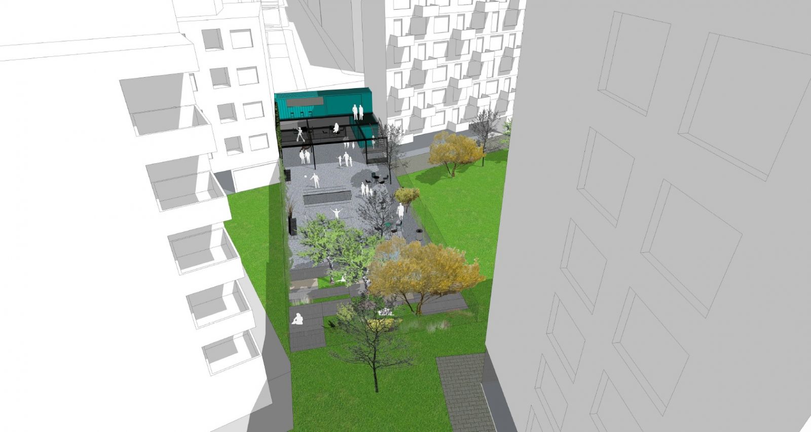 Občianske združenie si nechalo vypracovať štúdiu, za ktorou stojí architektonická kancelária Endorfine. Hlavným cieľom bolo osloviť susedov, seniorov a vytvoriť priestor pre športové či oddychové aktivity v spojení s priestorom pre workshopy a podujatia. V tomto zmysle architekti navrhli priestor rozčleniť na tri časti. Hlavnou sú kontajnery s vybavenosťou, orientované do ulice, za nimi je variabilná centrálna časť a v zadnej časti pozemku má vzniknúť oddychová časť.