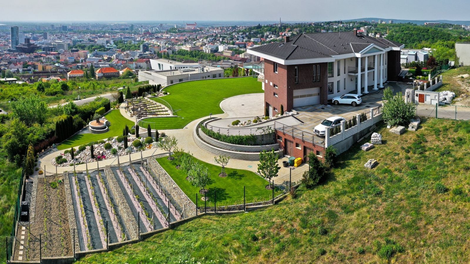 Realitná kancelária dopĺňa, že súčasťou vybavenia sú exkluzívne materiály, dizajnový nábytok či kvalitné technológie. Časť energie zabezpečujú solárne panely. Za obrovský benefit považuje aj pozemok, ktorý je náročne upravený. Umiestnená tu je okrasná i úžitková zóna, prepracovaná japonská záhrada či „mediteránska“ zóna s grilom, pizza pecou a vínnou pivnicou. Okrem toho sú v záhrade aj ovocné stromy, kríky s bobuľovým ovocím a vlastný vinohrad. Časť plochy bola vyrovnaná a upravená do podoby putting green-u, teda sa tu dá v menšom hrať golf.