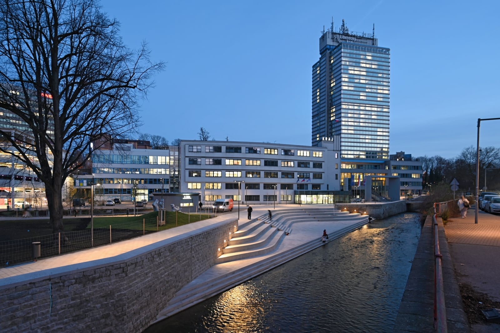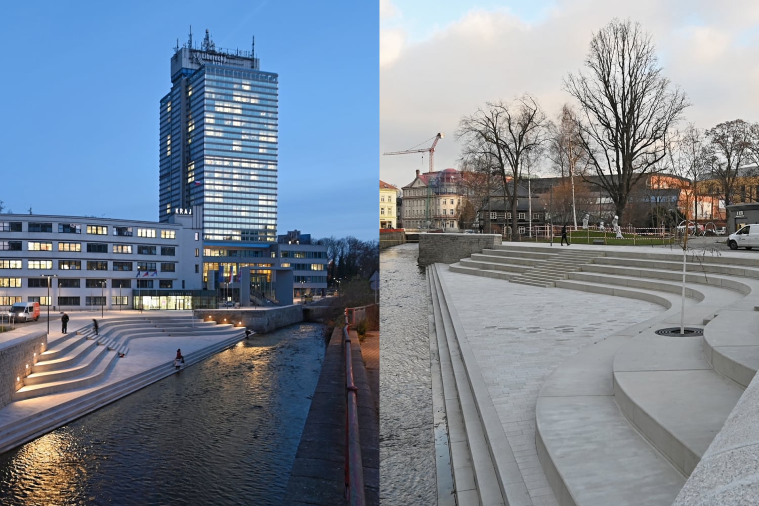 Výsledkom je desiatky metrov dlhé pobytové schodisko, ktoré umožňuje zísť až k rieke Lužická Nisa. Ide o najvýraznejšiu zmenu, ktorú priniesla obnova priestoru pred budovou kraja. Práce trvali viac ako rok a vyžiadali si takmer 155 miliónov korún (6,4 miliónov eur). Krajský úrad získal na úpravu svojho okolia aj európsku dotáciu vo výške 43 miliónov korún (1,8 milióna eur).