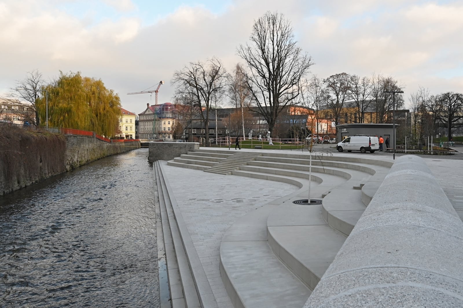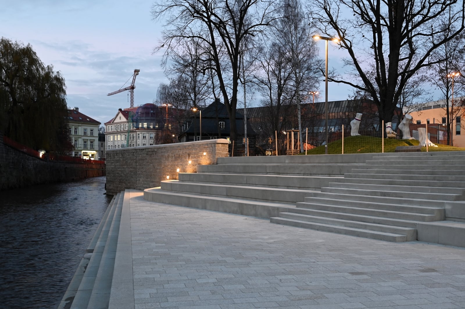 Okrem pobytového schodiska sa na mieste nachádza aj nový most cez rieku, pribudla plastika Magdalény Jetelovej v podobe štyroch obrovských nôh, fontána a detské ihrisko. Kompletnou obnovou prešiel aj vstup do budovy kraja a zrekonštruovaný bol aj priľahlý park. Od konca novembra tu bude v prevádzke aj kiosk s občerstvením.