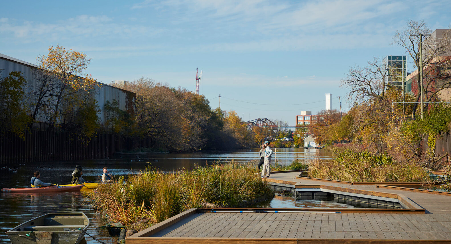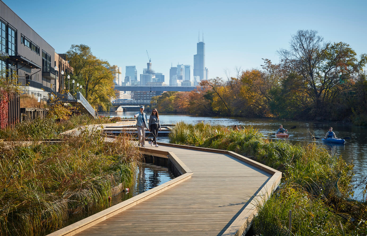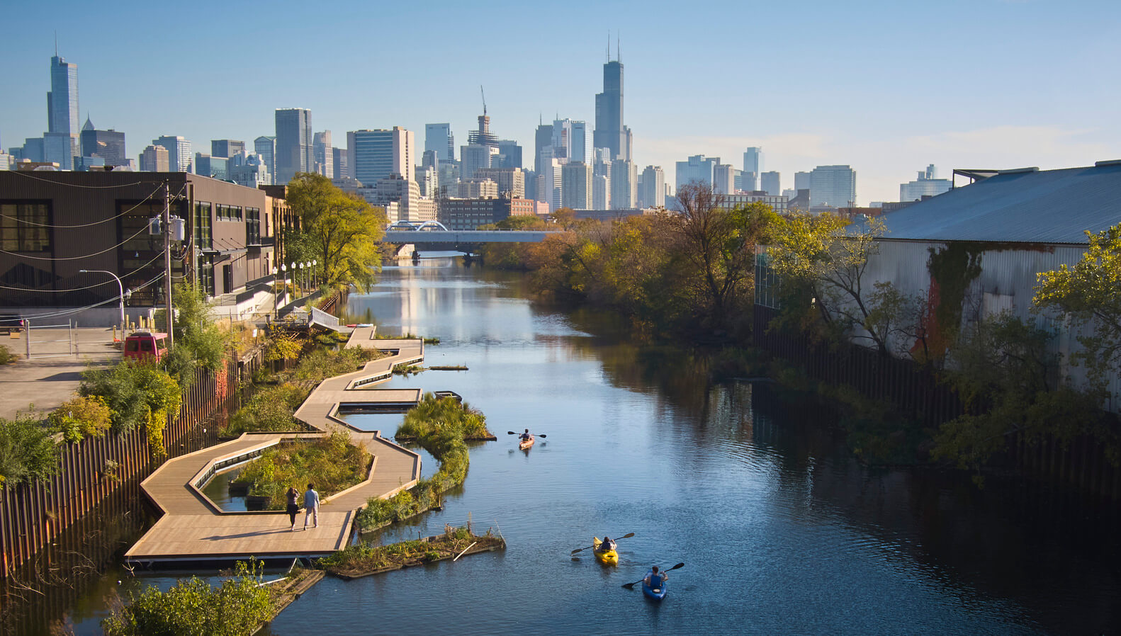 Podobne ako mnohé americké mestá, aj Chicago koncom 19. a začiatkom 20. storočia uvažovalo o brehoch riek, pretekajúcich cez mestá, len ako o priestoroch podporujúcich lodnú dopravu. Takéto zásahy síce výrazne uľahčili obchodovanie aj rozvoj priemyslu, no prakticky úplne eliminovali riečny biotop. Mestá tak síce mávajú vybudovanú fungujúcu lodnú infraštruktúru, no všetky oblasti medzi tým sú v podstate nevyužité. S úbytkom lodnej dopravy v posledných desaťročiach sa však čoraz častejšie vynára otázka, ako naložiť s týmito priestormi. k riešeniu problémupristúpili aj v Chicagu.