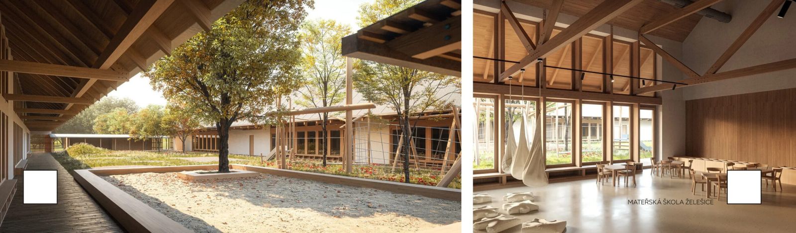 Jednoduchý tvar objektov a ich premyslené dispozičné riešenie si kládlo za cieľ minimalizovať potrebné investície a zefektívniť fungovanie v rámci materskej školy. Vo výsledku sa tak autorom víťazného návrhu podarilo vytvoriť nevšednú, no zato nadčasovú vzdelávaciu inštitúciu. Projekt tak môže byť príkladom nielen pre obce, ale pre niektoré menšie mestské časti, ktoré sa potrebujú popasovať s nedostatočnou kapacitou školských alebo predškolských zariadení.