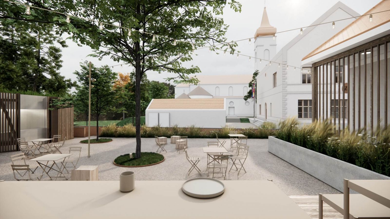 Úpravou prejde tiež priľahlý dvor. „Spolu s ateliérom Divokvet navrhujeme do centra nádvoria zasadiť vzrastlý strom, ktorý zlepší mikroklímu a poskytne tieň. Navrhujeme tiež zníženie tehlového múru zo strany dvora na bezpečnú výšku, odstránenie nevhodných stromoradí pri múre a otvorenie priehľadov smerom na rotundu a kostol,“ dodáva štúdio.