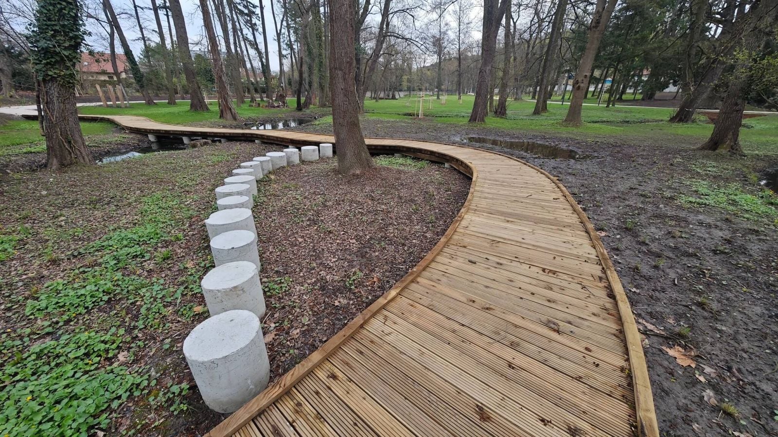 Okrem toho bolo opravené povodňou poškodené murivo pri susedných záhradách. Dokončili sa mlatové chodníky, drevený chodník v mokradi, osvetlenie aj kamerový systém. Obnovený bol historický vodopád, prepojenie medzi jazerom a vodným prvkom a v parku vzniklo aj nové lapidárium doplnené zeleňou a architektonickými detailmi.