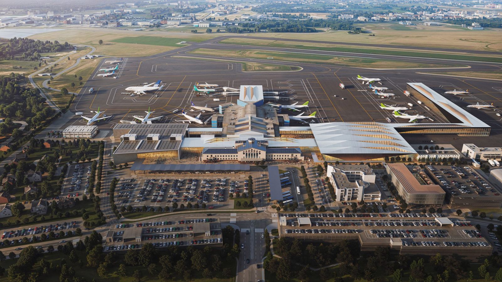 Nemenej ambicióznym zámerom je výstavba nového príletového terminálu pre miestne letisko. Za architektúrou stojí opäť Zaha Hadid Architects, víťaz medzinárodnej súťaže. Nový príletový terminál je vnímaný ako súčasť širšej stratégie mobility, ktorá zahŕňa aj železnicu, mestskú hromadnú dopravu, cyklodopravu a pešie trasy. Letisko by mala pretínať vysokorýchlostná železnica, napojená na novú magistrálu Rail Baltica. Letisko sa má takto priamo napojiť na život mesta vďaka veľmi jednoduchým prestupom.