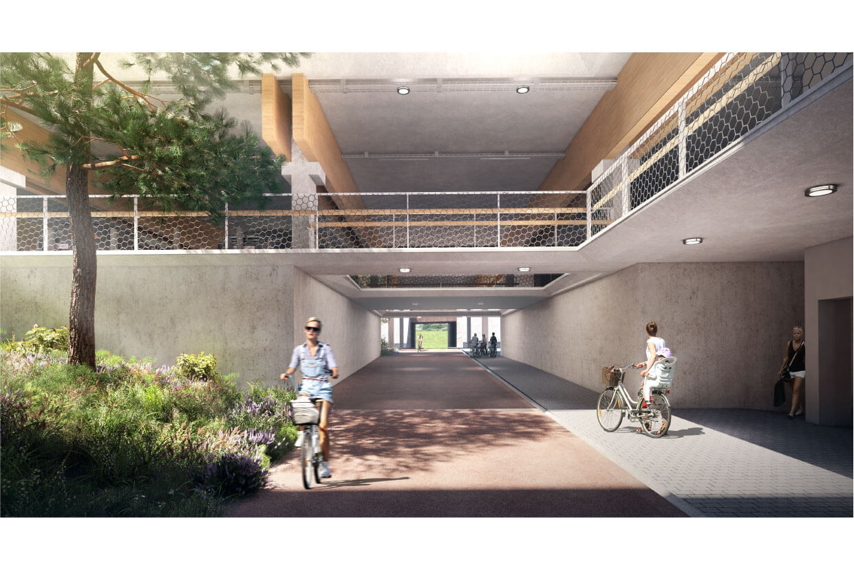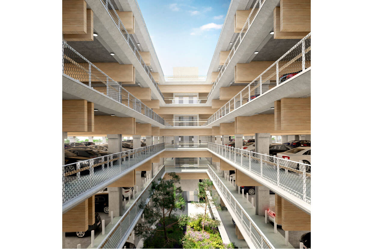 Okrem poskytnutia možnosti parkovania a následného lepšieho napojenia na verejnú mestskú dopravu prichádzajú architekti s vytvorením vnútorného átria s množstvom zelene. Tá poskytne budove dodatočnú pridanú hodnotu - možnosť trávenia času v týchto priestoroch. Vďaka tomuto kroku budova nebude slúžiť len ako tranzitné miesto, ale stáva sa aj príjemným pobytovým miestom pre obyvateľov aj návštevníkov mesta Antverpy.