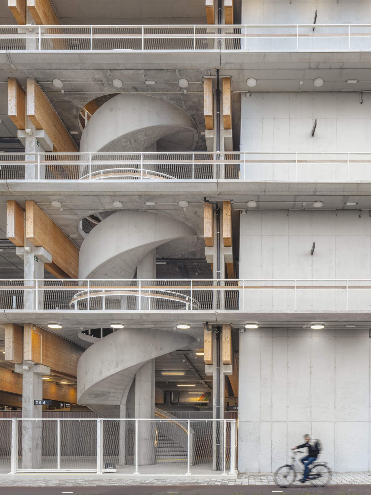 Architektúra týchto budov je daná predovšetkým ich štruktúrou a spôsobom, ako komunikujú so svojím okolím. Rozhodujúcim prvkom je absencia fasád objektov. Namiesto toho je zdôraznená veľmi úhľadná hybridná štruktúra – kombinácia betónových stĺpov a drevených trámov. Vďaka rozhodnutiu otvoriť celú architektúru smerom von a do okolia vstupuje do parkovacieho domu denné svetlo, čo uľahčuje orientáciu v priestore a tiež poskytuje väčší pocit bezpečia.