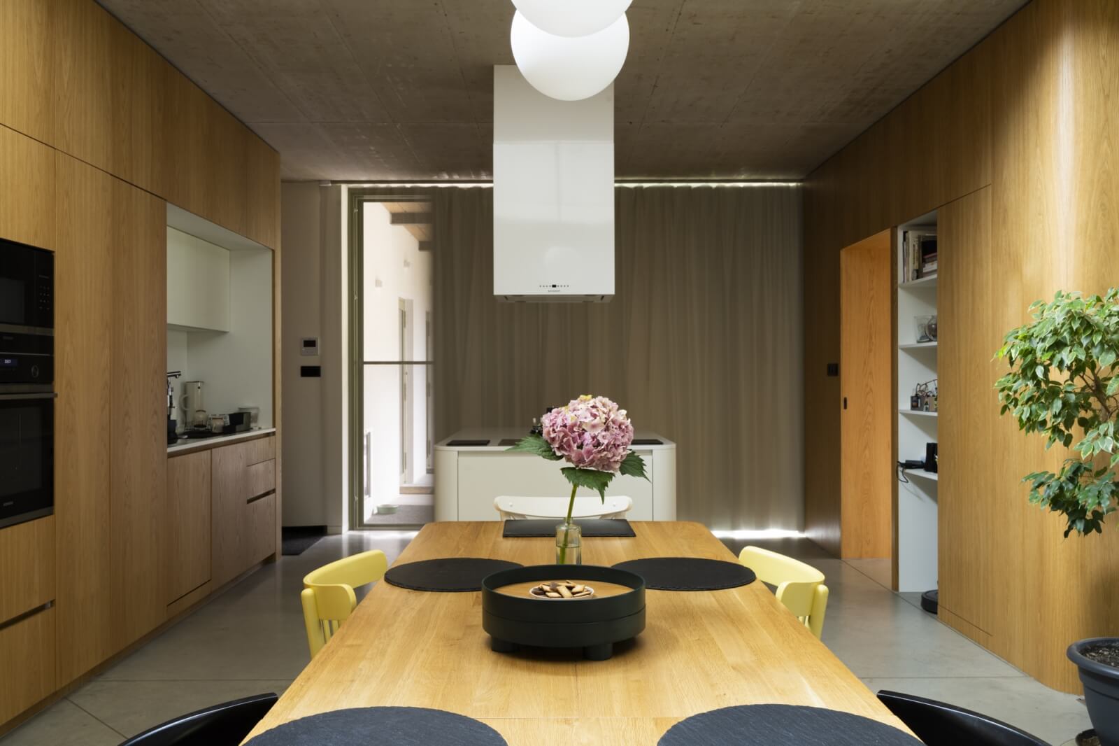 Výrazným aspektom je aj prechod medzi materiálmi. Ten je možné docieliť použitím rovnakého druhu podlahy v interiéri ako v exteriéri alebo výber rovnakej či podobnej farebnosti pri nábytku, doplnkoch a stenách.