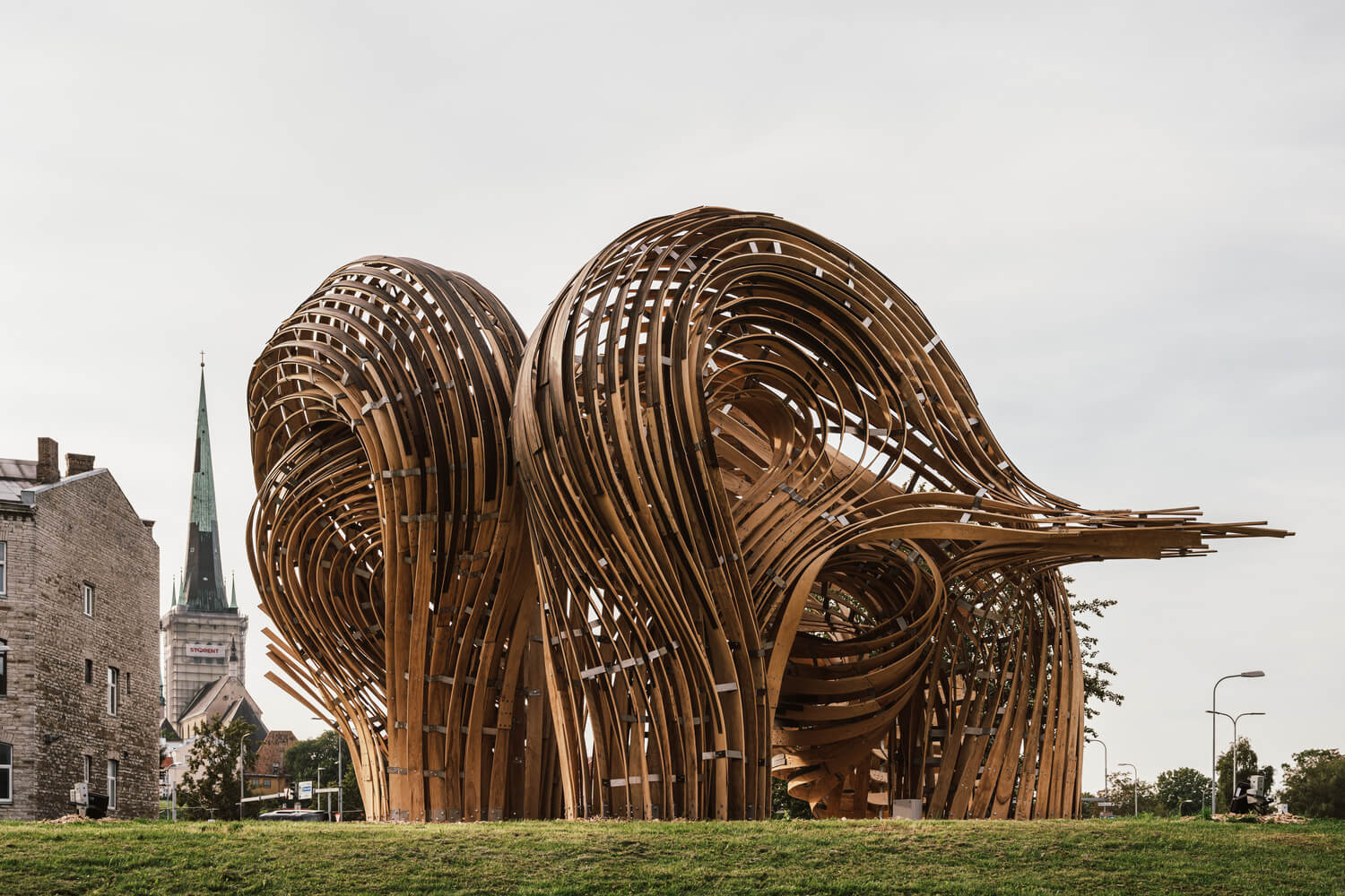 Niekoľko nových projektov naznačujúcich posun v oblasti výstavby z dreva evidujeme aj v Estónsku. Medzi najznámejšie patrí Steampunkový pavilón v Tallinne, postavený v roku 2019 z parou ohýbaného tvrdého dreva. Pavilón vznikol v rámci 5. ročníka Bienále architektúry v Tallinne.