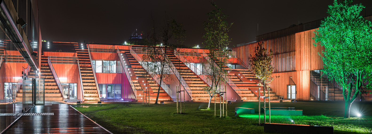 Jednotlivé objekty slúžiace na vzdelávanie, oddych či prácu v laboratóriách budú navzájom prepojené prostredníctvom exteriérových prvkov, ako sú pobytové schody, pochôdzné rampy či sieť peších chodníkov. Tento prístup zabezpečí dostatočnú priechodnosť územia a vnímanie areálu ako živého organizmu, ktorý ale nie je uzavretý sám do seba.