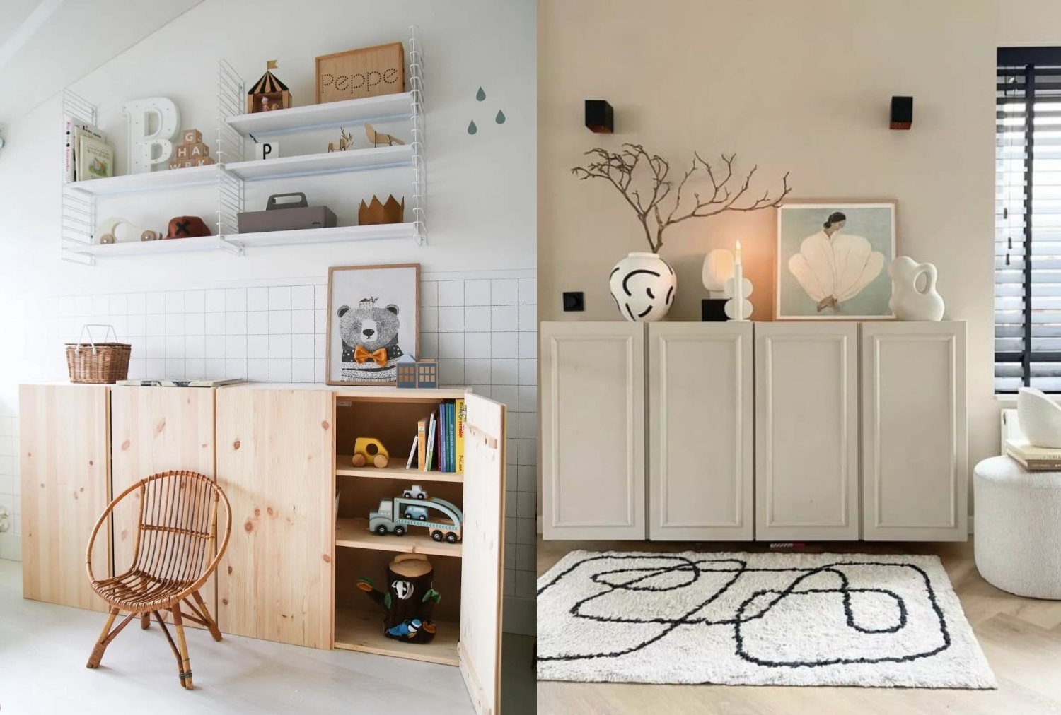 Úpravy dokážu z minimalistických kusov vytvoriť pútavé zostavy, vrátane rozmerných nábytkov ako sú šatníkové skrine či kuchynské linky. V prípade modulárnych systémov, ako je Trofast alebo Pax, sa kreativita prejavuje v ich rozmanitých konfiguráciách, čím sa dokážu prispôsobiť špecifickým požiadavkám na skladovanie či dispozíciu miestností. Hoci sú vnímané skôr v kontexte detských izbieb, ich forma podporujúca origanizovanosť je vhodná aj do pracovní, či obývačiek.
