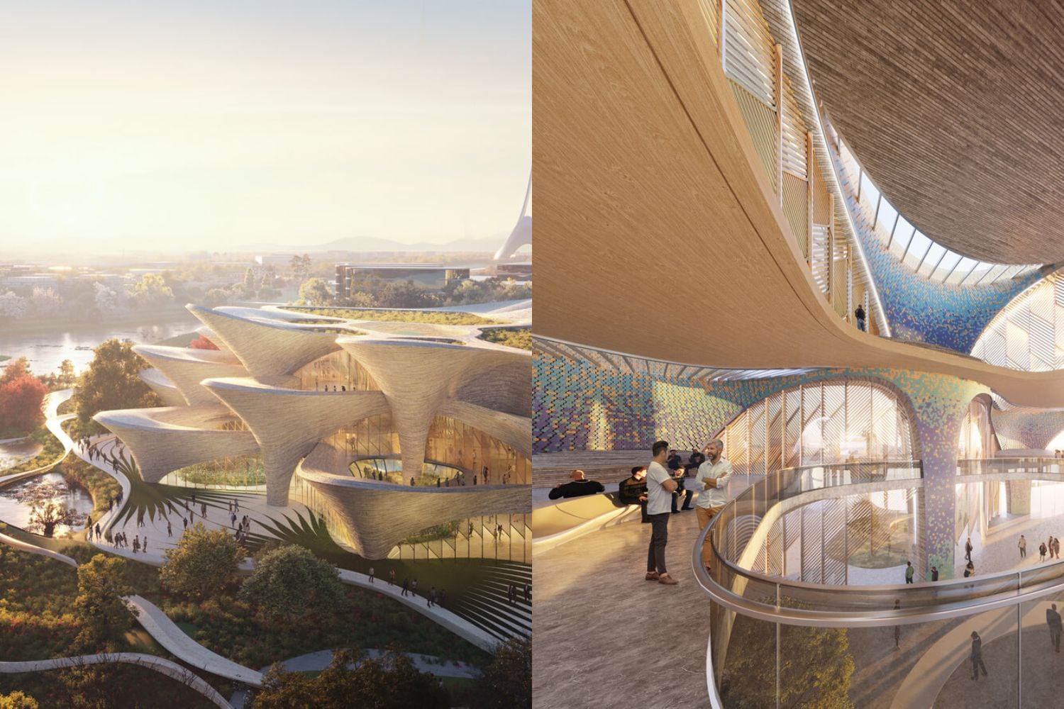 Dôležitou súčasťou vedecko-výskumného centra budú aj organicky tvarované zelené strechy a exteriérové terasy. Architekti veria, že miestna komunita a kultúrni nadšenci prenesú svoje predstavenia či iné umelecké aktivity aj na tieto plochy, ktoré sa postupne rozlievajú do širokého okolia.