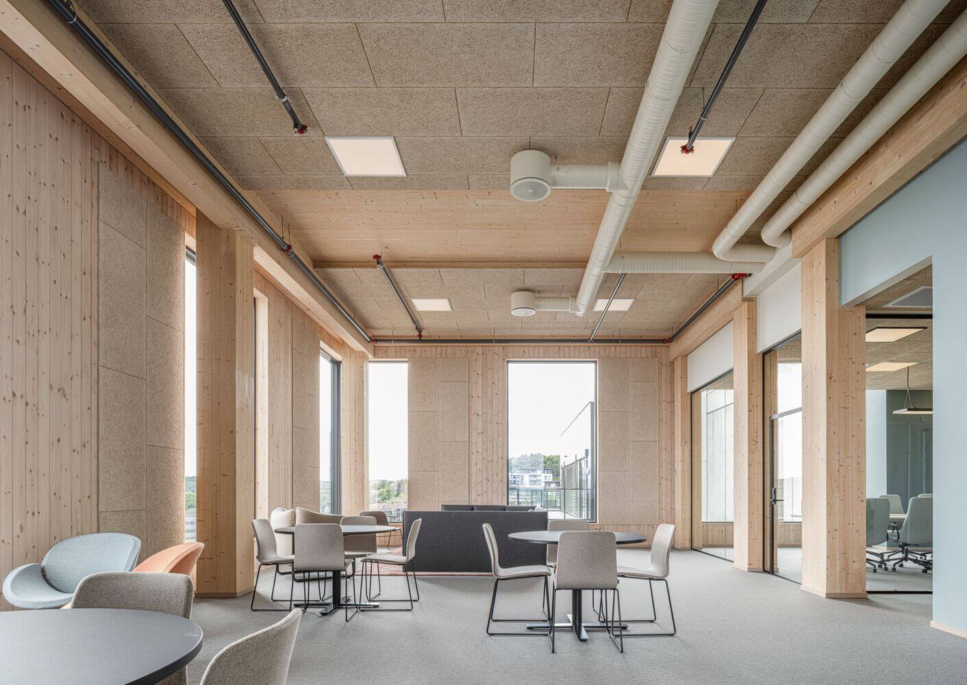 Táto obchodno-administratívna budova s podlažnou plochou viac ako 3-tisíc metrov štvorcových sa rozprestiera na šiestich nadzemných podlažiach. Za jej návrhom stojí lokálne štúdio Oslotre, ktoré sa dlhodobo špecializuje na výstavbu drevostavieb. „Zameriavame sa na zdravú a trvácnu architektúru s využitím bioklimatických princípov a prirodzeného vetrania,” hovoria o svojej práci architekti z Oslotre. Tvrdia tiež, že rozsiahle využitie dreva pri výstavbe budov zabezpečuje zdravšie vnútorné prostredie, lepšiu požiarnu odolnosť a dobré akustické vlastnosti projektov.