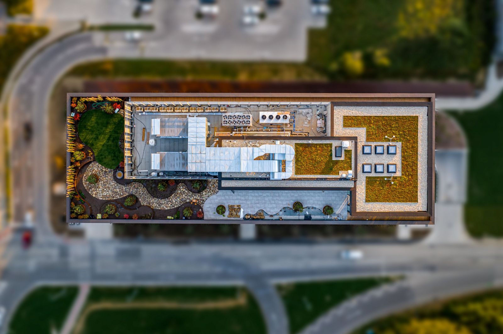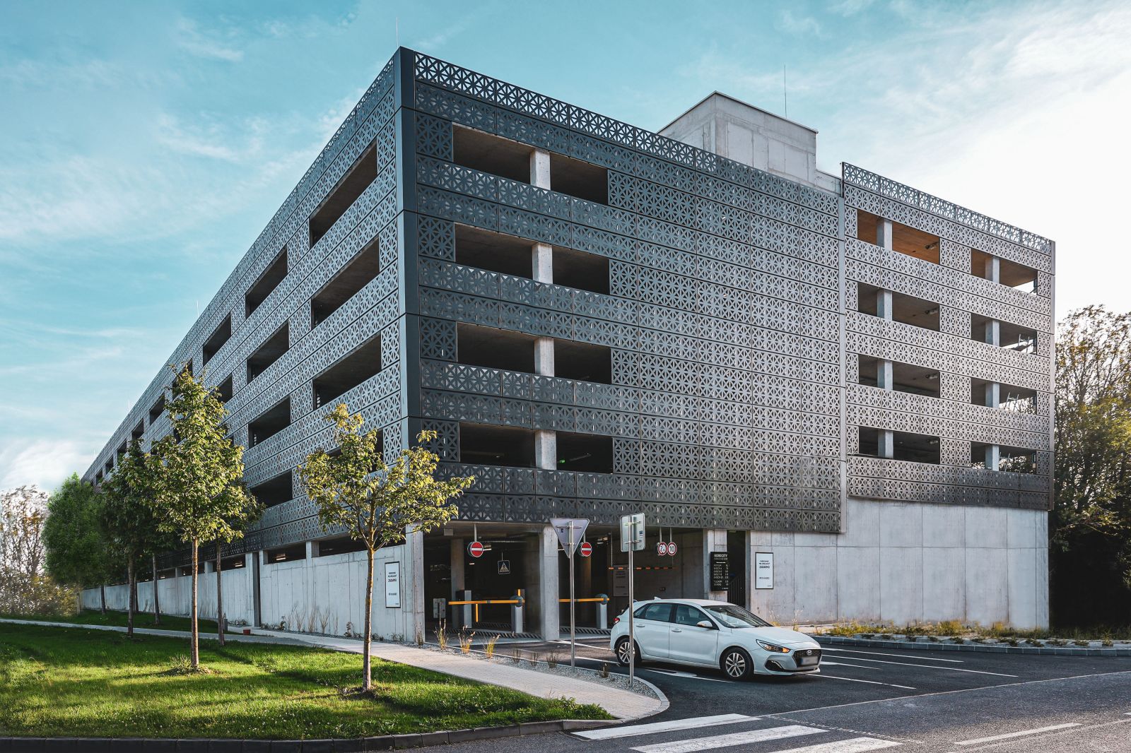 Prehliadanou, no dôležitou súčasťou administratívnej zóny je parkovací dom. V určitom ohľade ide o unikátnu stavbu, najmä vďaka rozsahu, v akom na jeho streche postupne pribúdajú solárne panely. Tie by mali podľa zverejnených informácií vyrobiť až 10% zo všetkej elektrickej energie, potrebnej pre kancelárie Obchodná i parkovací dom samotný. Ročne pôjde o približne 135 MWh elektrickej energie.
